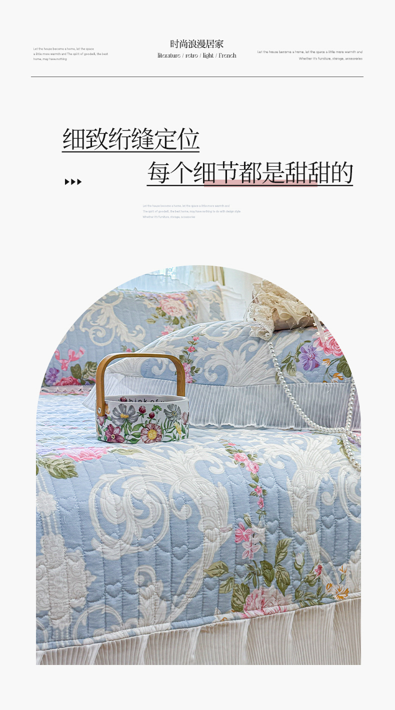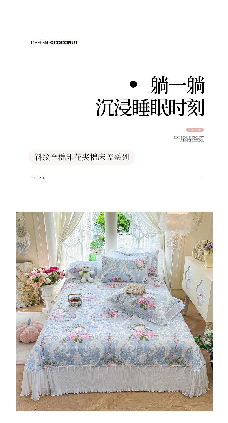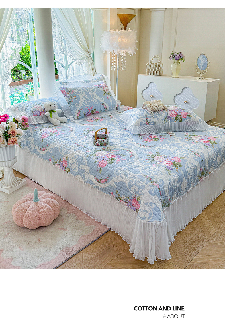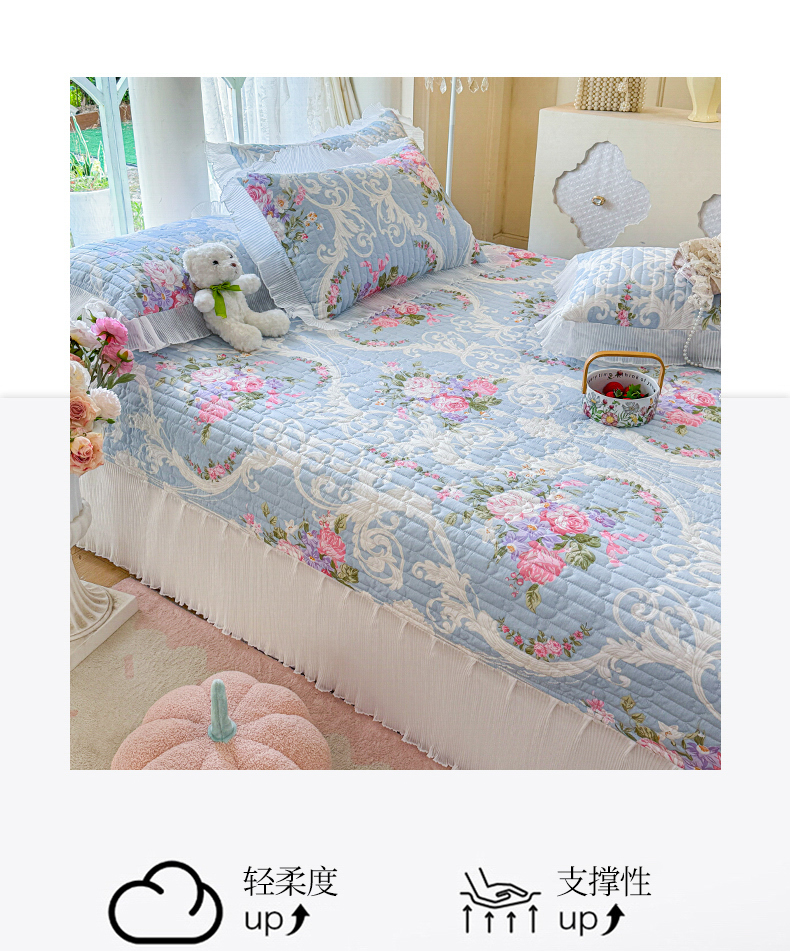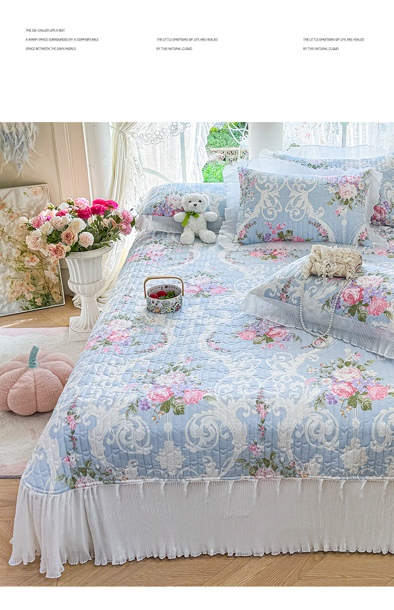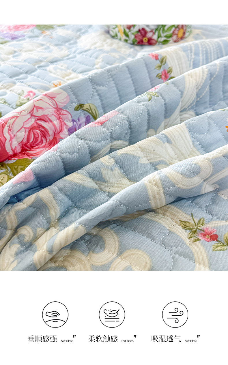 商品名称:虹星家纺 2025新款斜纹全棉纯棉印花床盖-清甜 清甜-绽放序曲