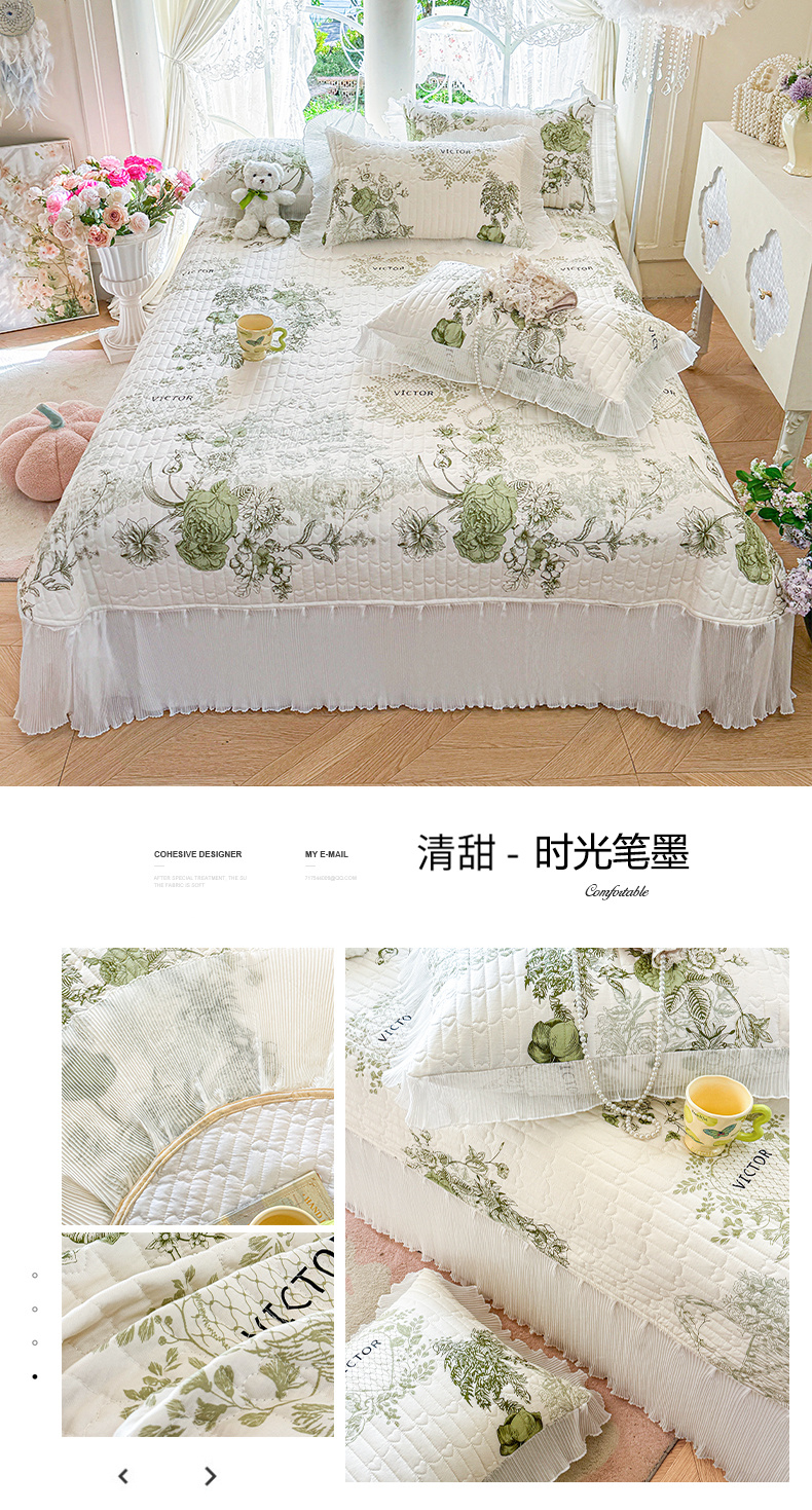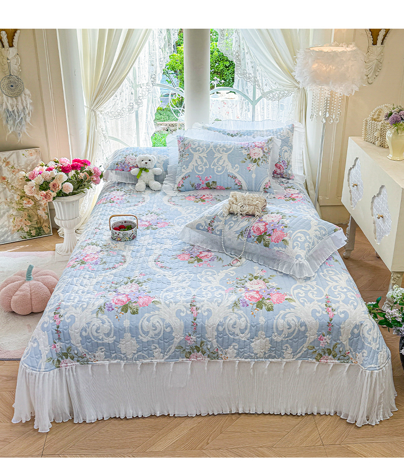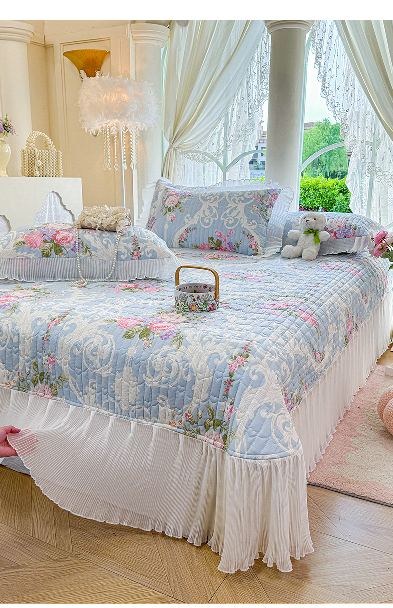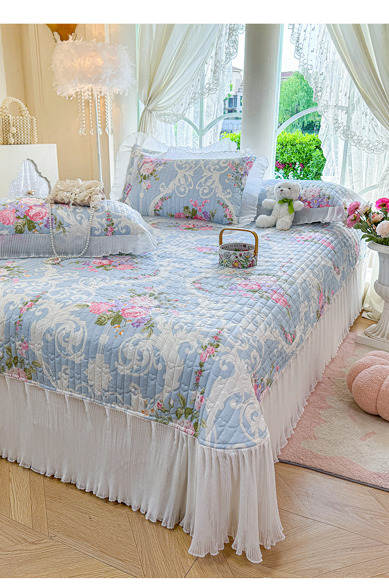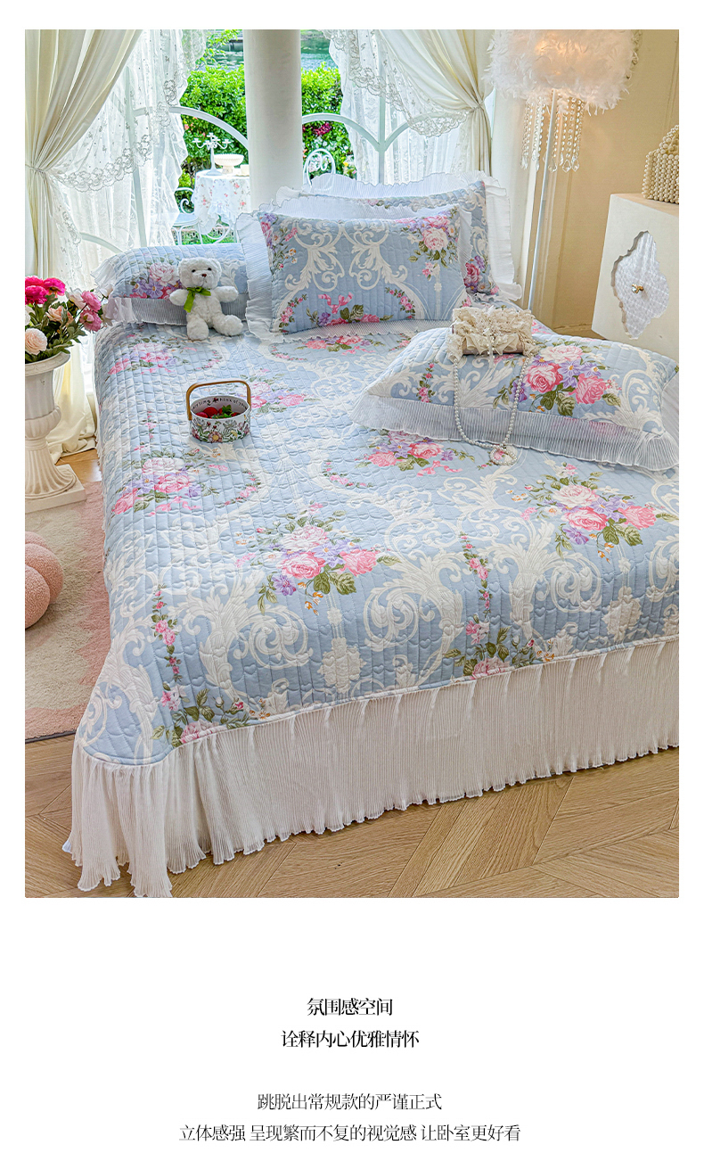 商品名称:虹星家纺 2025新款斜纹全棉纯棉印花床盖-清甜 清甜-绽放序曲