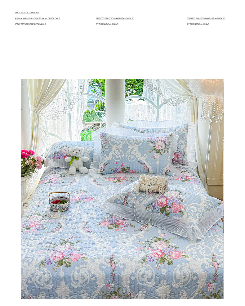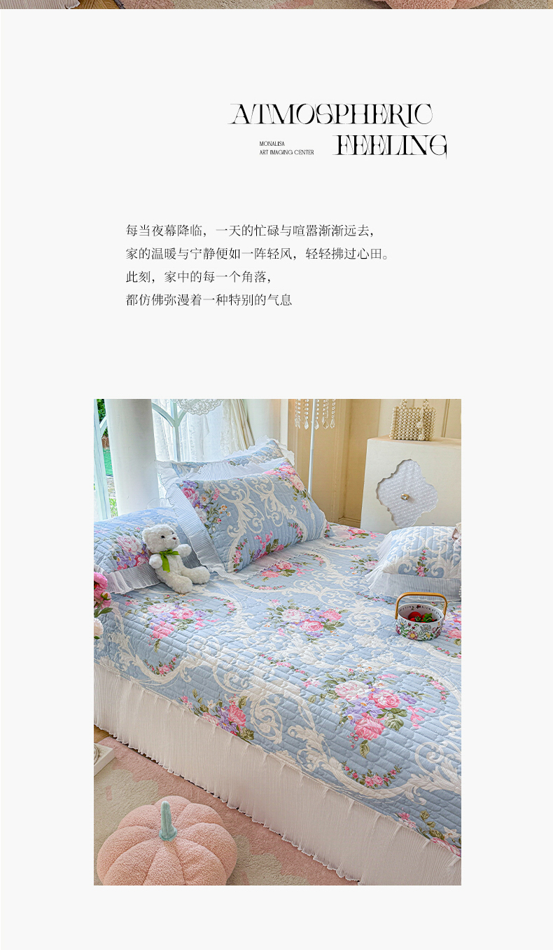 (总)虹星家纺 2025年新款全棉床盖三件套-花影倾梦,花影倾梦-浅米色,花影倾梦-薄荷绿,花影倾梦-天空蓝,花影倾梦-樱花粉,花影倾梦-优雅紫,花影倾梦-云朵白