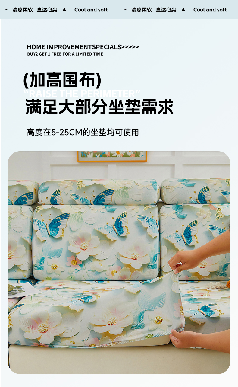 当前位置: 91家纺网 > 商品网购 > 居家布艺 > 坐垫/椅垫/沙发垫 > 沙发 > 天下布艺2025新款5D立体冰丝沙发笠 蝶恋花