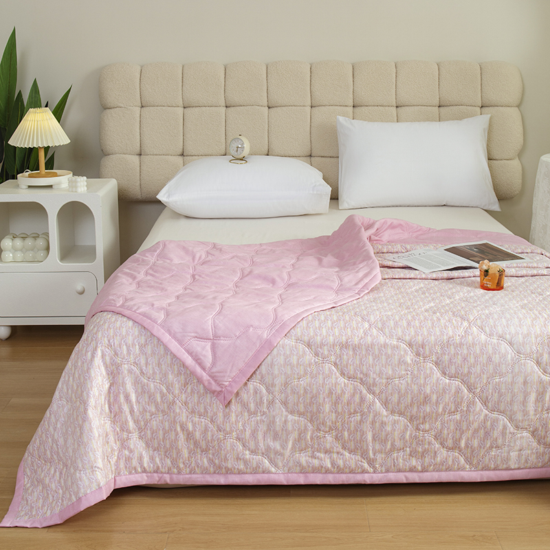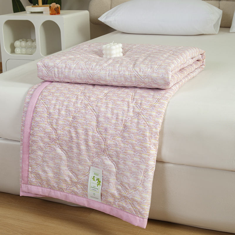 诗雅纺织 2025新款艾草驱蚊功能夏被超声波压花礼品空调被 红粉