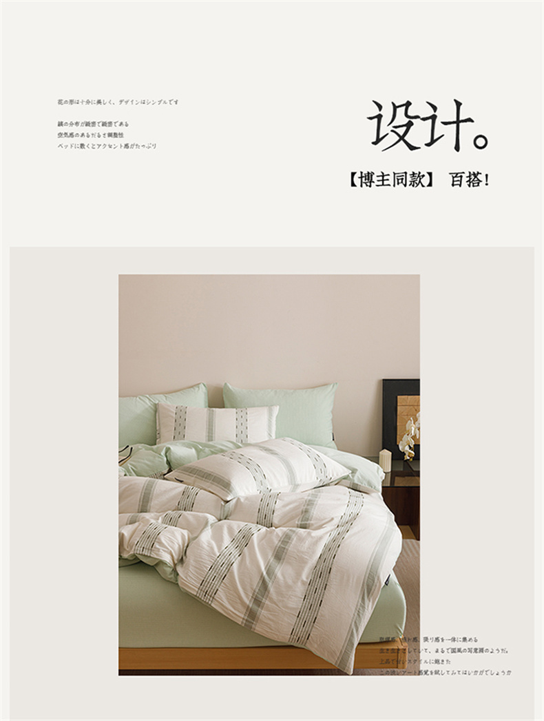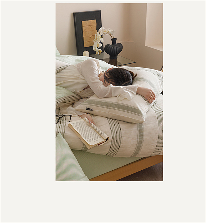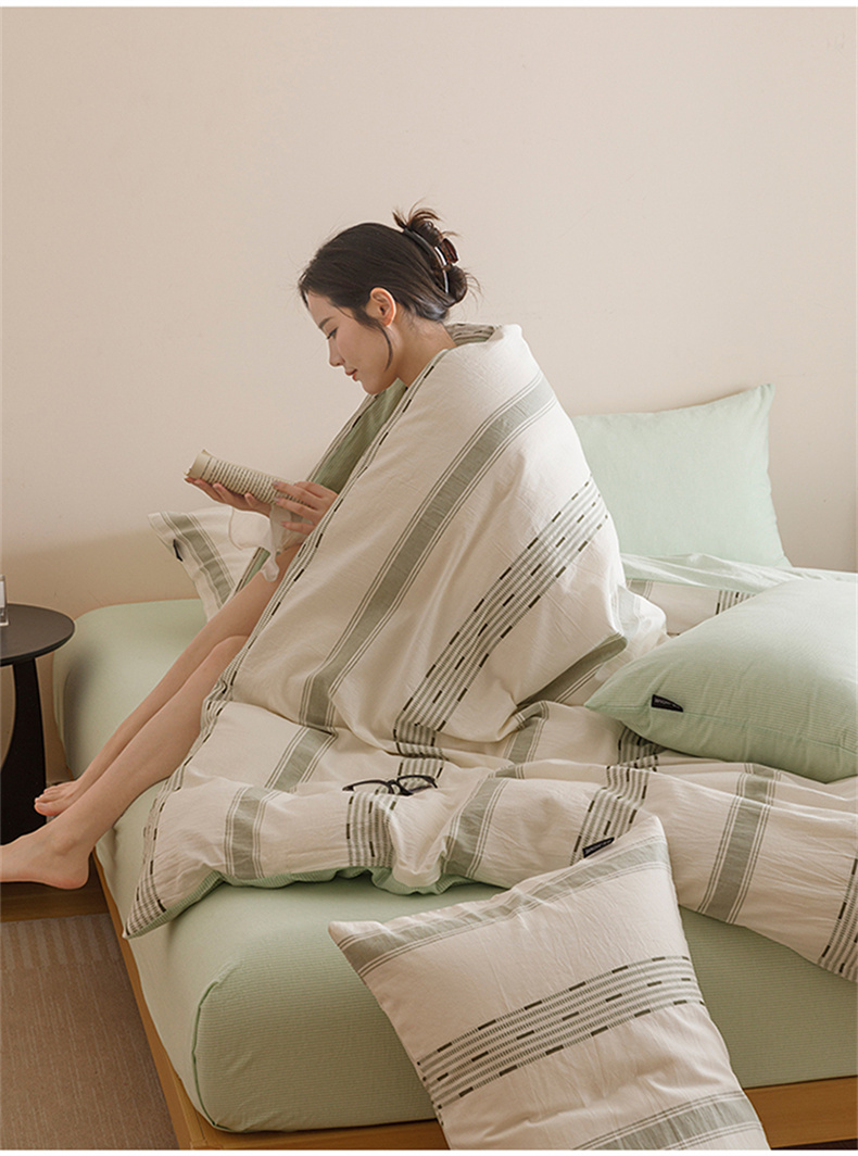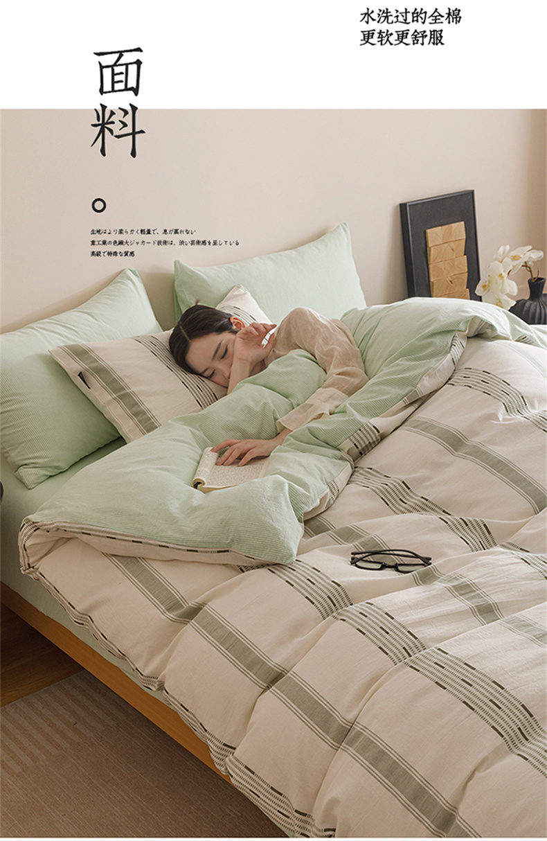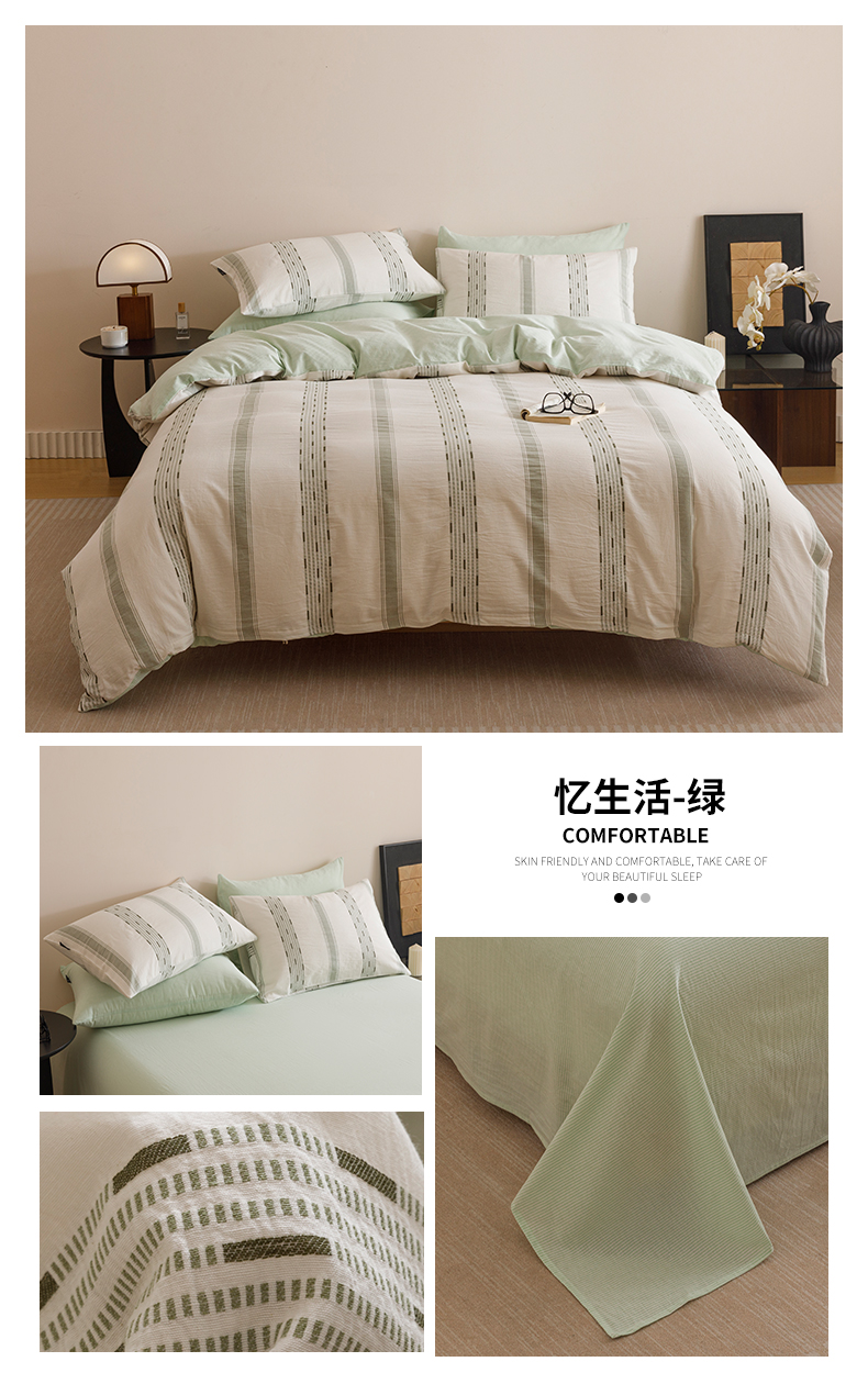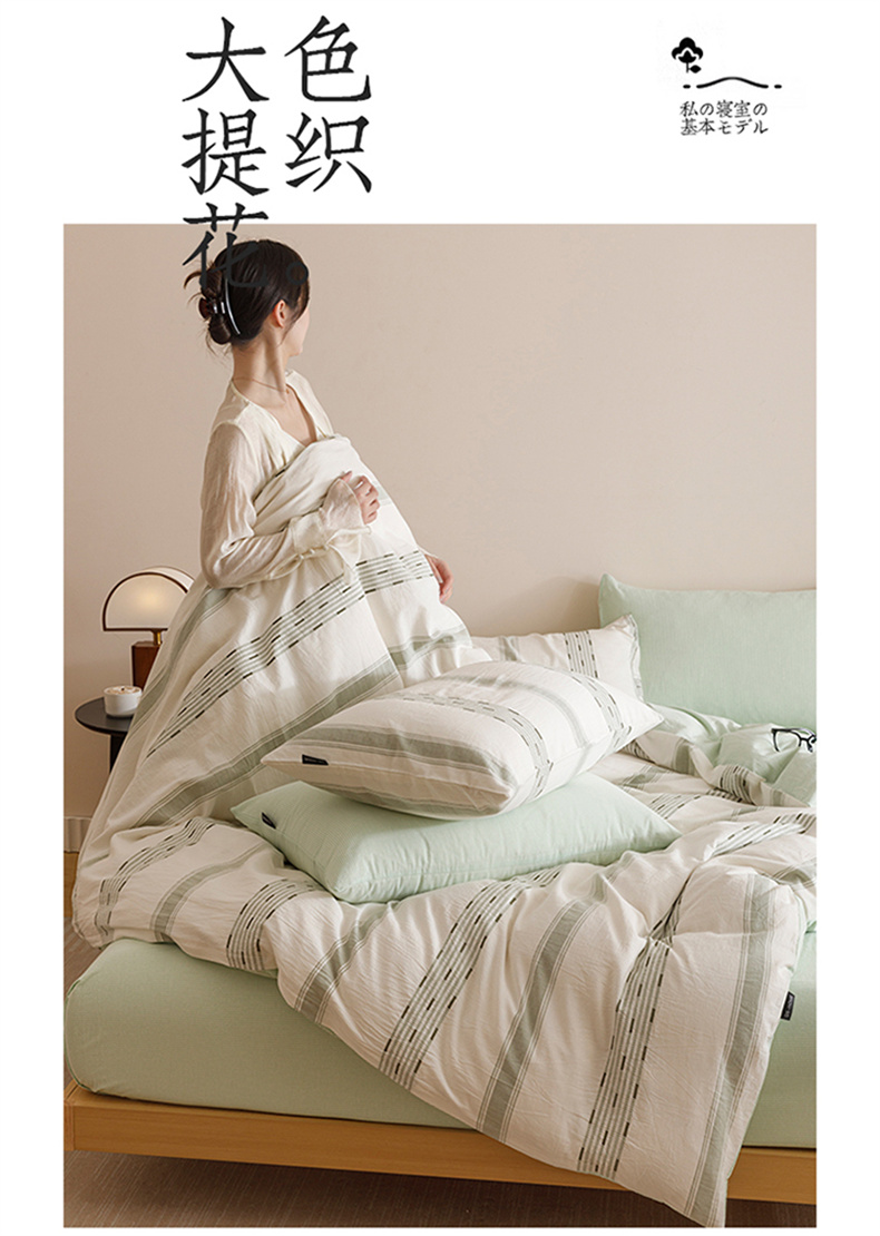 当前位置: 91家纺网 > 商品网购 > 床品套件 > 四件套 > 全棉普通四件套 > 趣色家纺2025新款高密织色织大提花全棉四件套 忆生活-绿