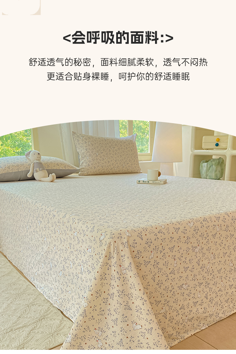 商品名称:梦初语 2025夏季直播爆款A类水洗棉皱皱纱双层纱床单学生宿舍三件套 海棠-紫