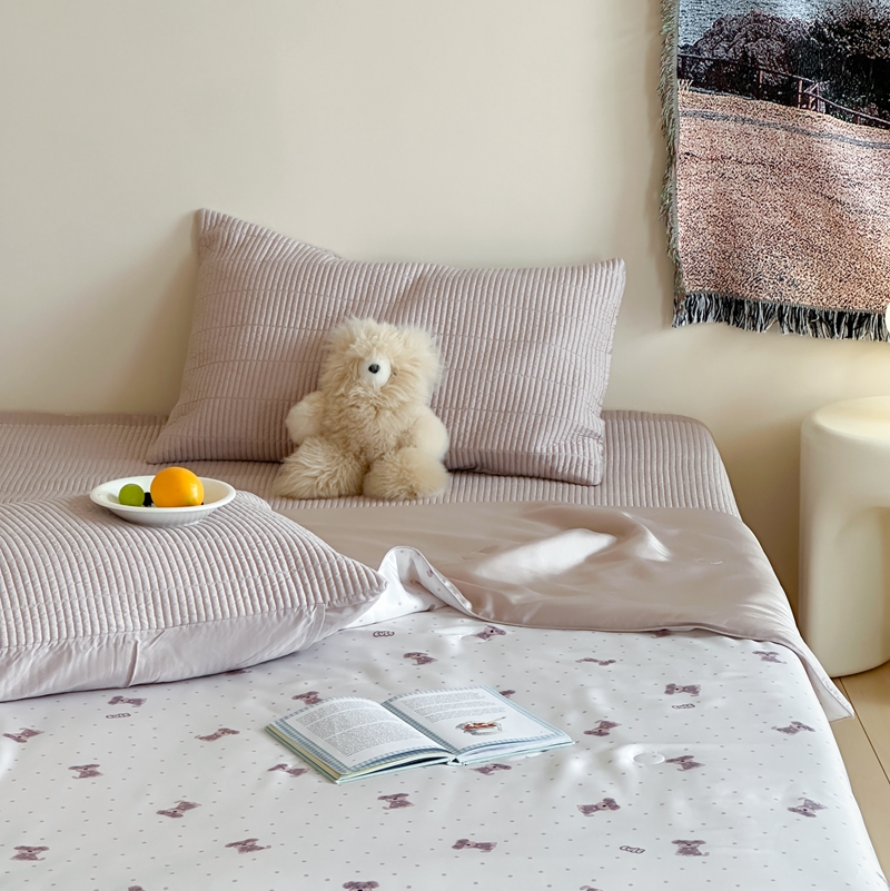 (总)汇庭 2025新款秋冬胖胖樱桃春秋被+樱桃菲菲床盖三件套,组合图下单仅供展示不可下单,粉色,绿色,米色