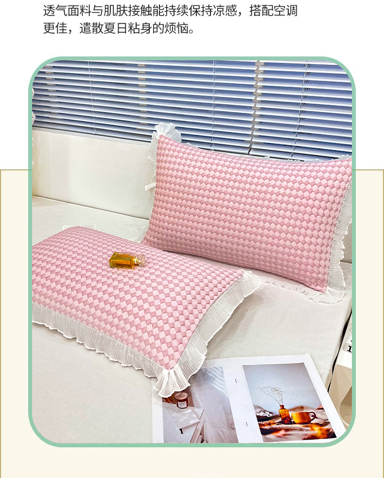 商品名称:芯宜佳 2025年新款冰豆豆花边单人枕套 小菱形-粉