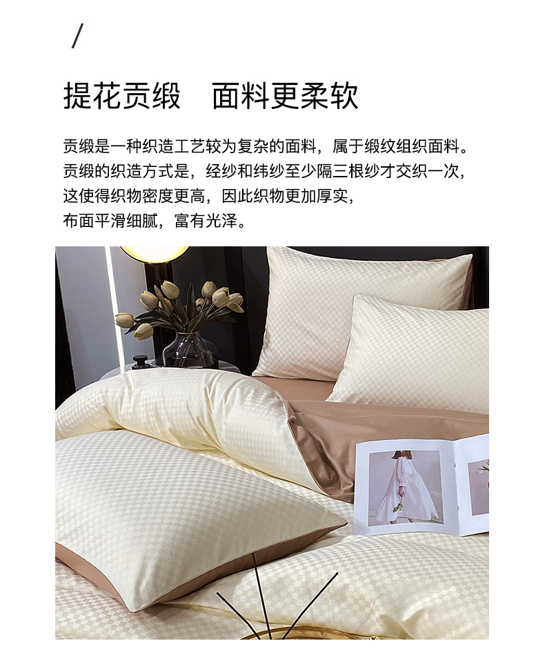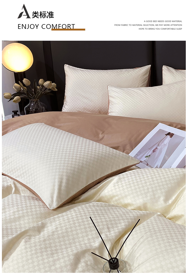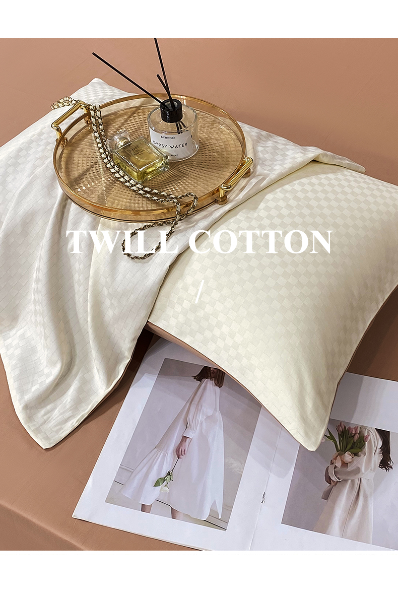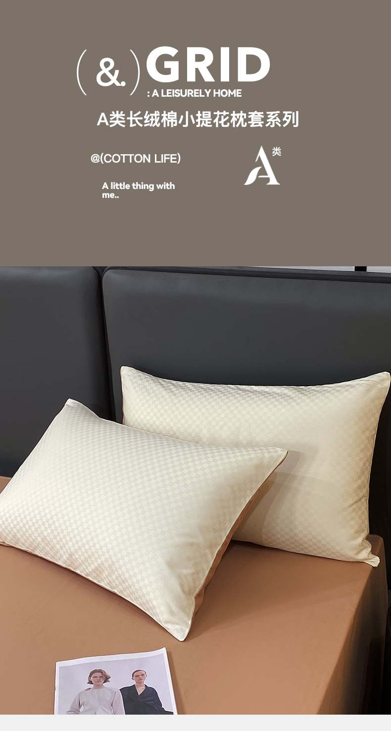 金鑫汇家纺 2024新款长绒棉提花小方格系列四件套单品系列-单枕套 奶昔白+咖(新拍)