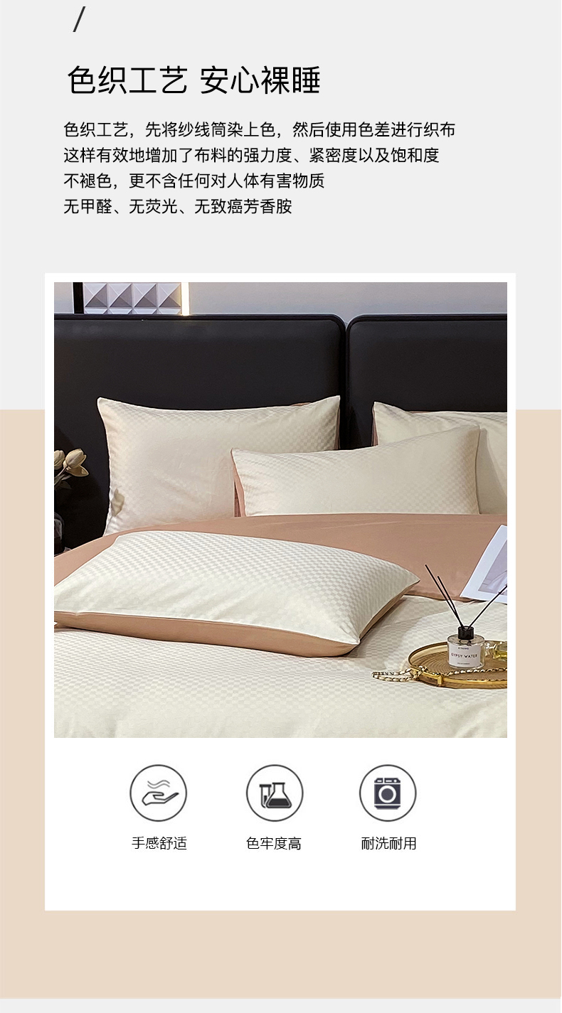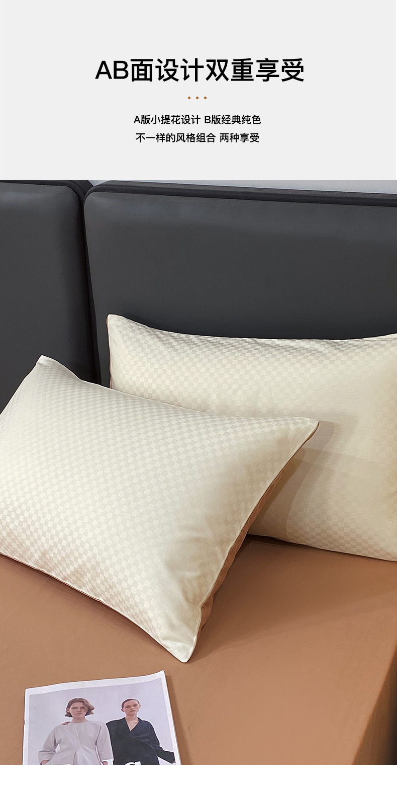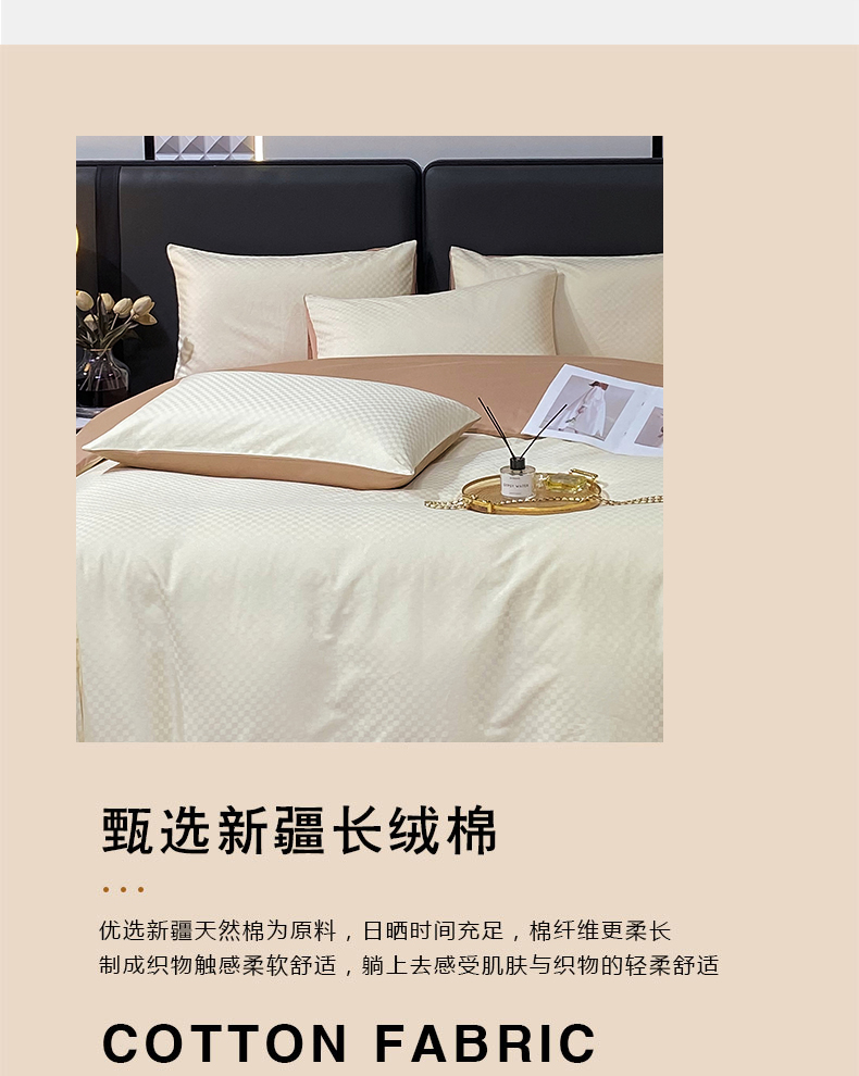 金鑫汇家纺 2024新款长绒棉提花小方格系列四件套单品系列-单枕套 奶昔白+咖(新拍)