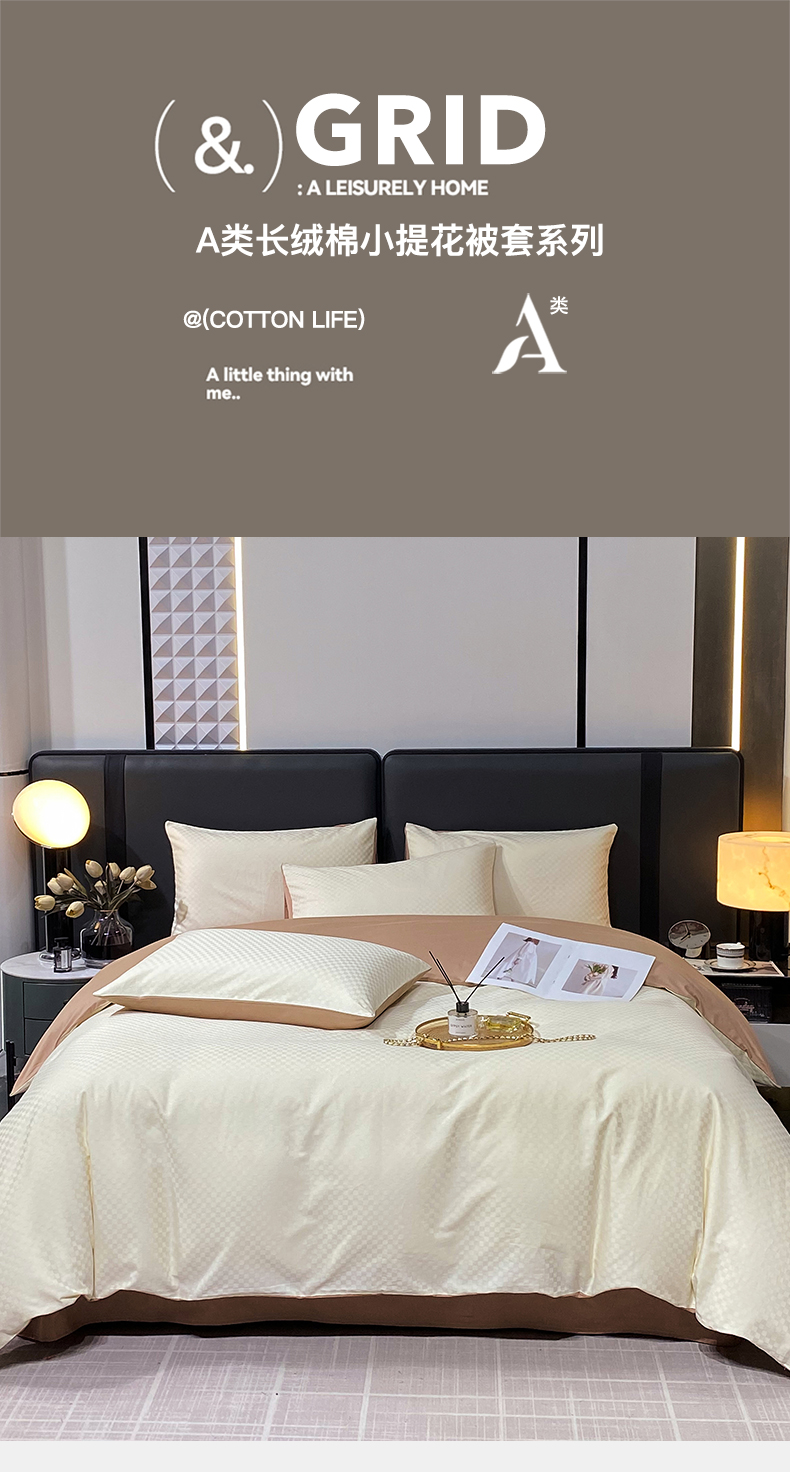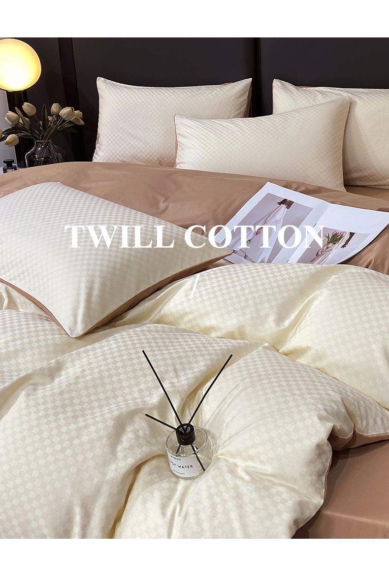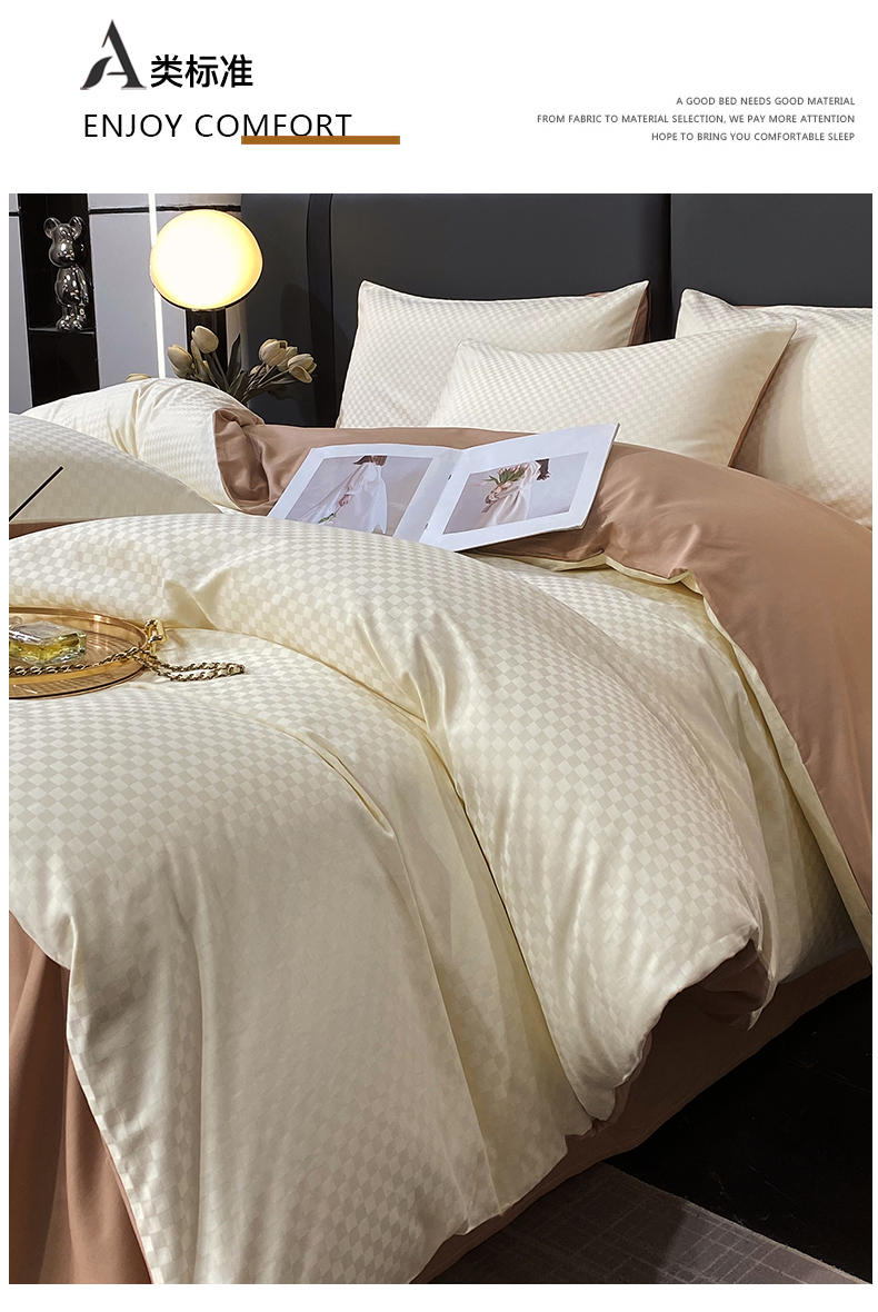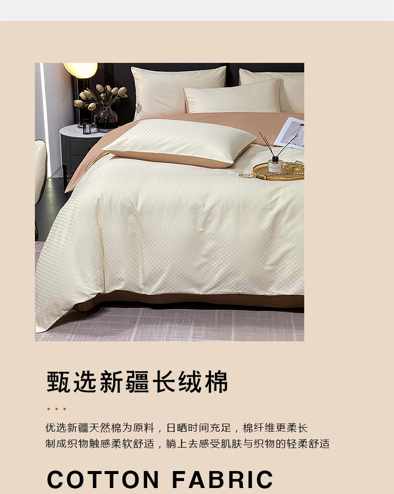 金鑫汇家纺 2024新款长绒棉提花小方格系列四件套单品系列-单被套 奶昔白+咖(新拍)