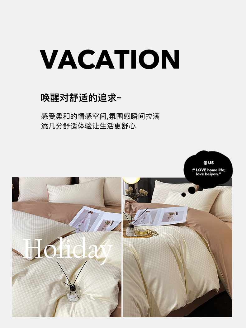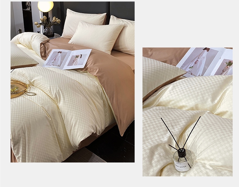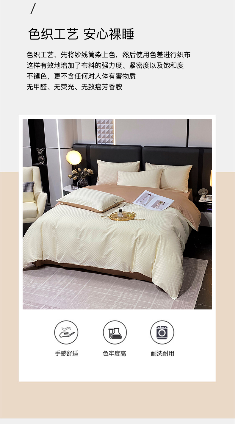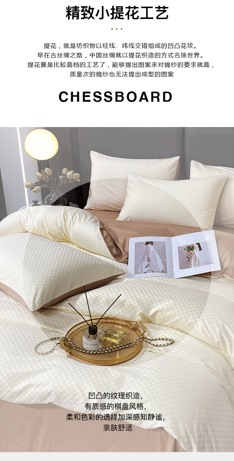 金鑫汇家纺 2024新款长绒棉提花小方格系列四件套单品系列-单被套 奶昔白+咖(新拍)