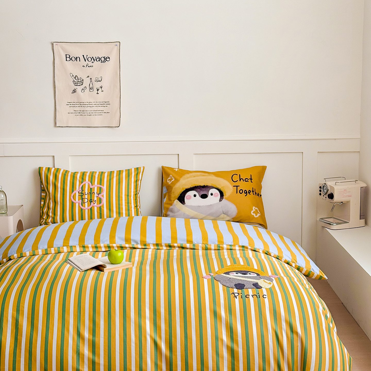 商品名称:窝米 2025新品毛巾绣X数码13370全棉卡通系列四件套(水豚 牛角面包) 水豚