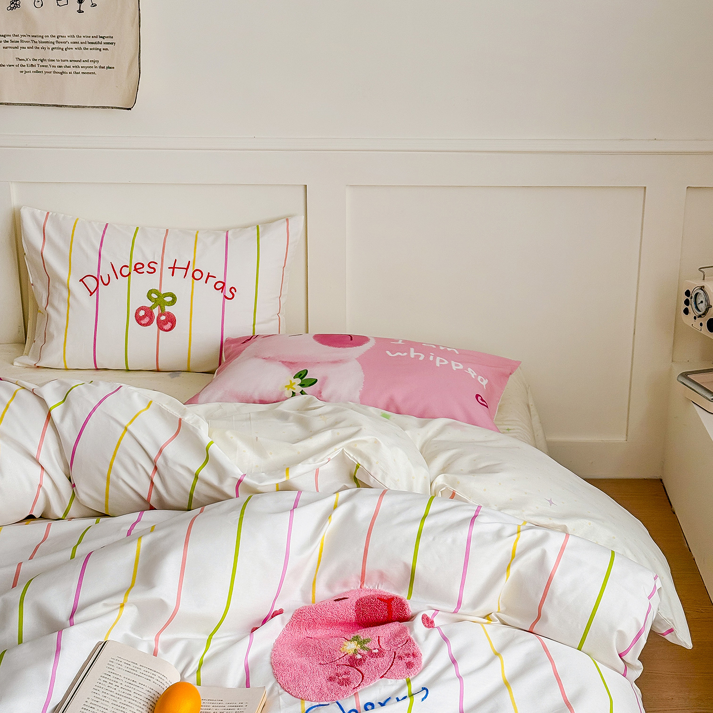 窝米 2020春夏新品全棉13372四件套小波西风系列草莓酱,草莓酱