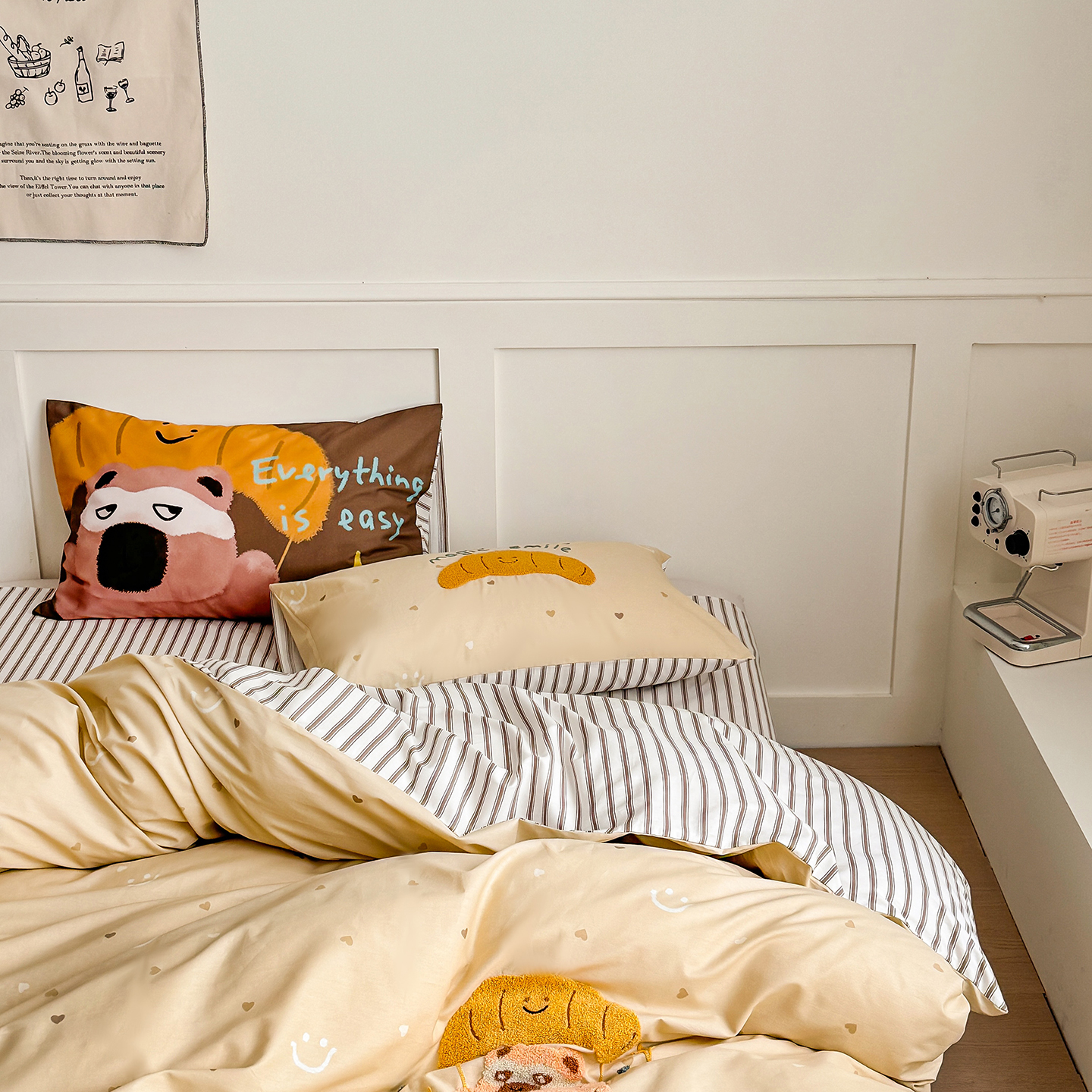 窝米 2025新品毛巾绣X数码13370全棉卡通系列四件套(水豚 牛角面包) 水豚
