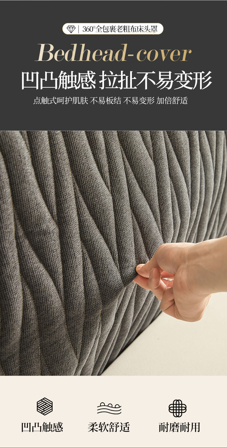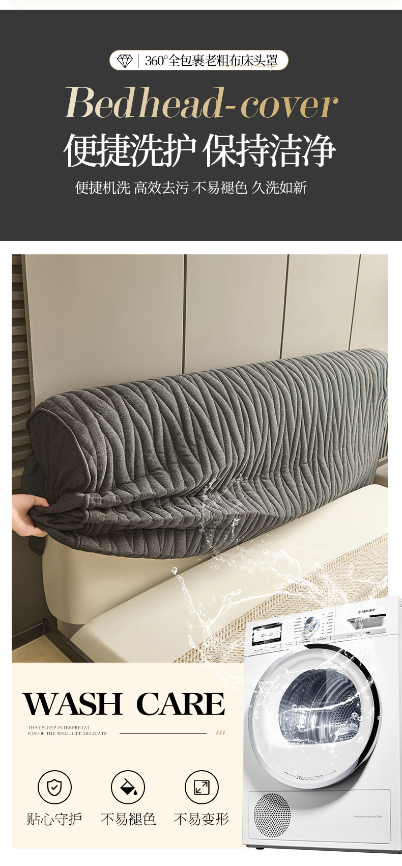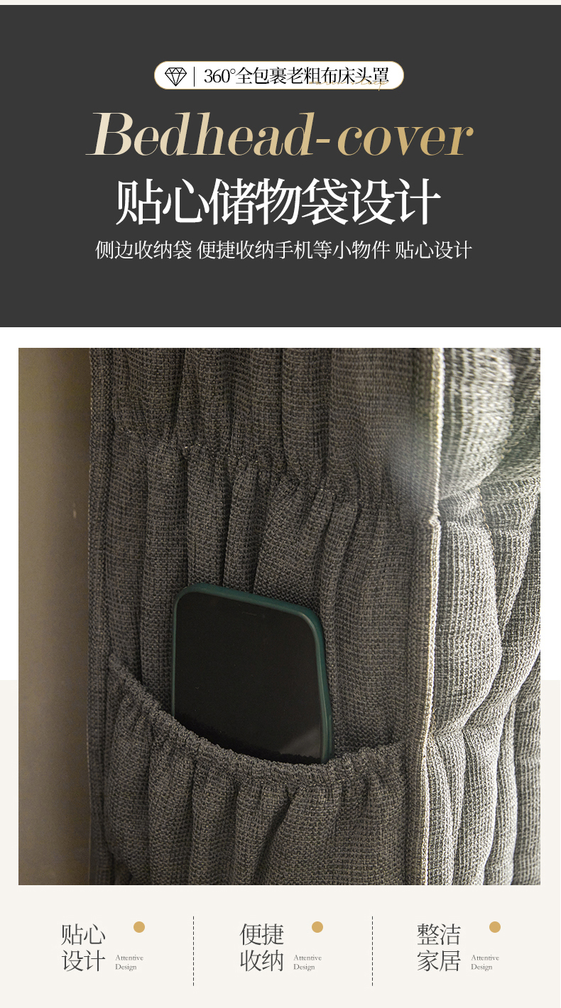 情恒家纺 2025新款老粗布加厚双面可用全包床头罩 老粗布-星辰灰