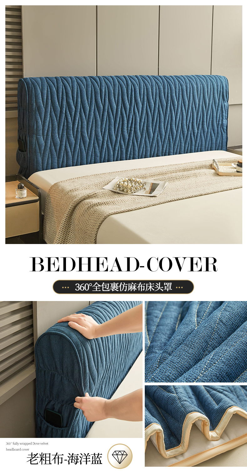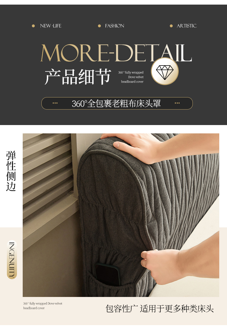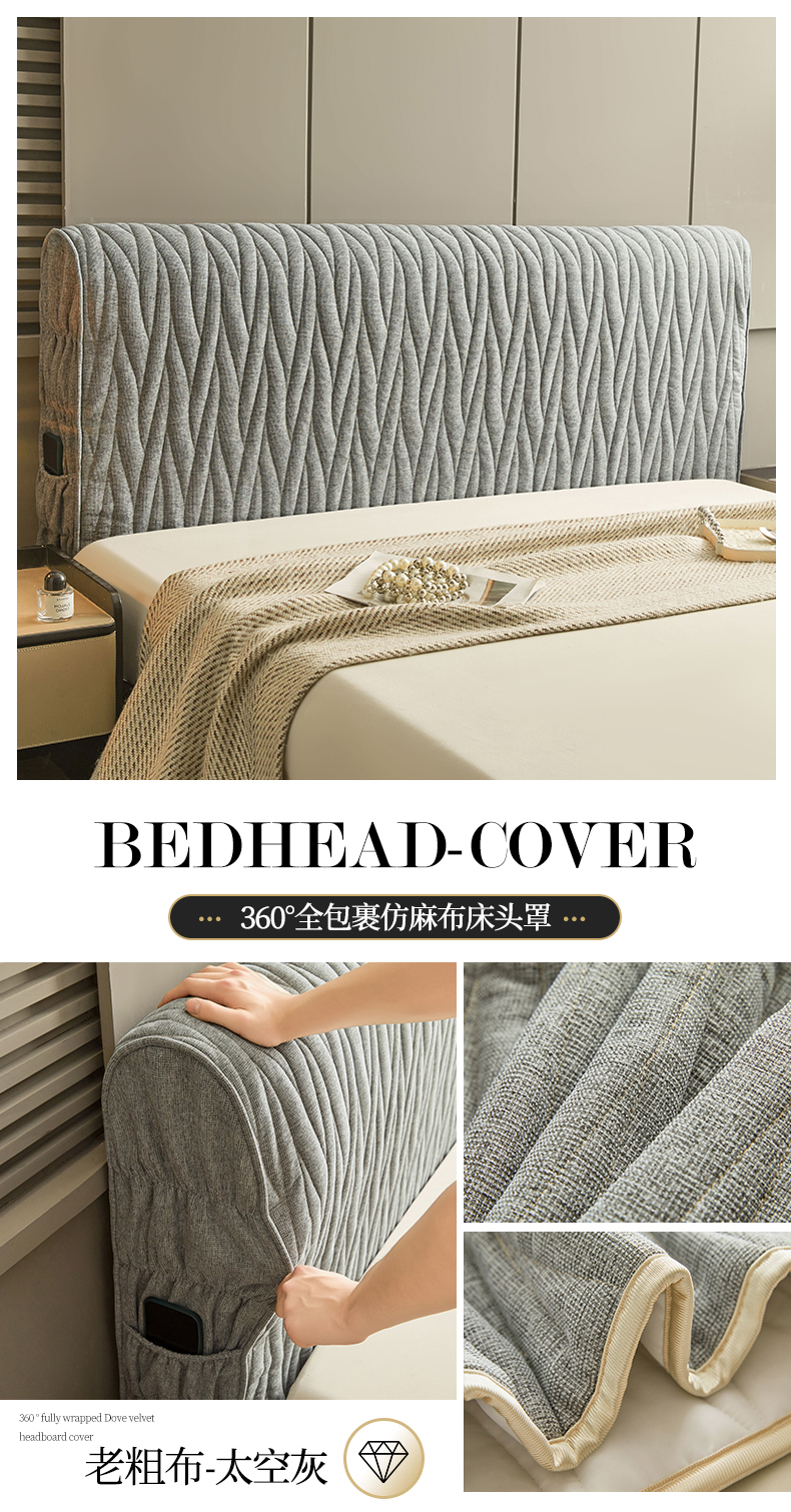 情恒家纺 2025新款老粗布加厚双面可用全包床头罩 老粗布-星辰灰