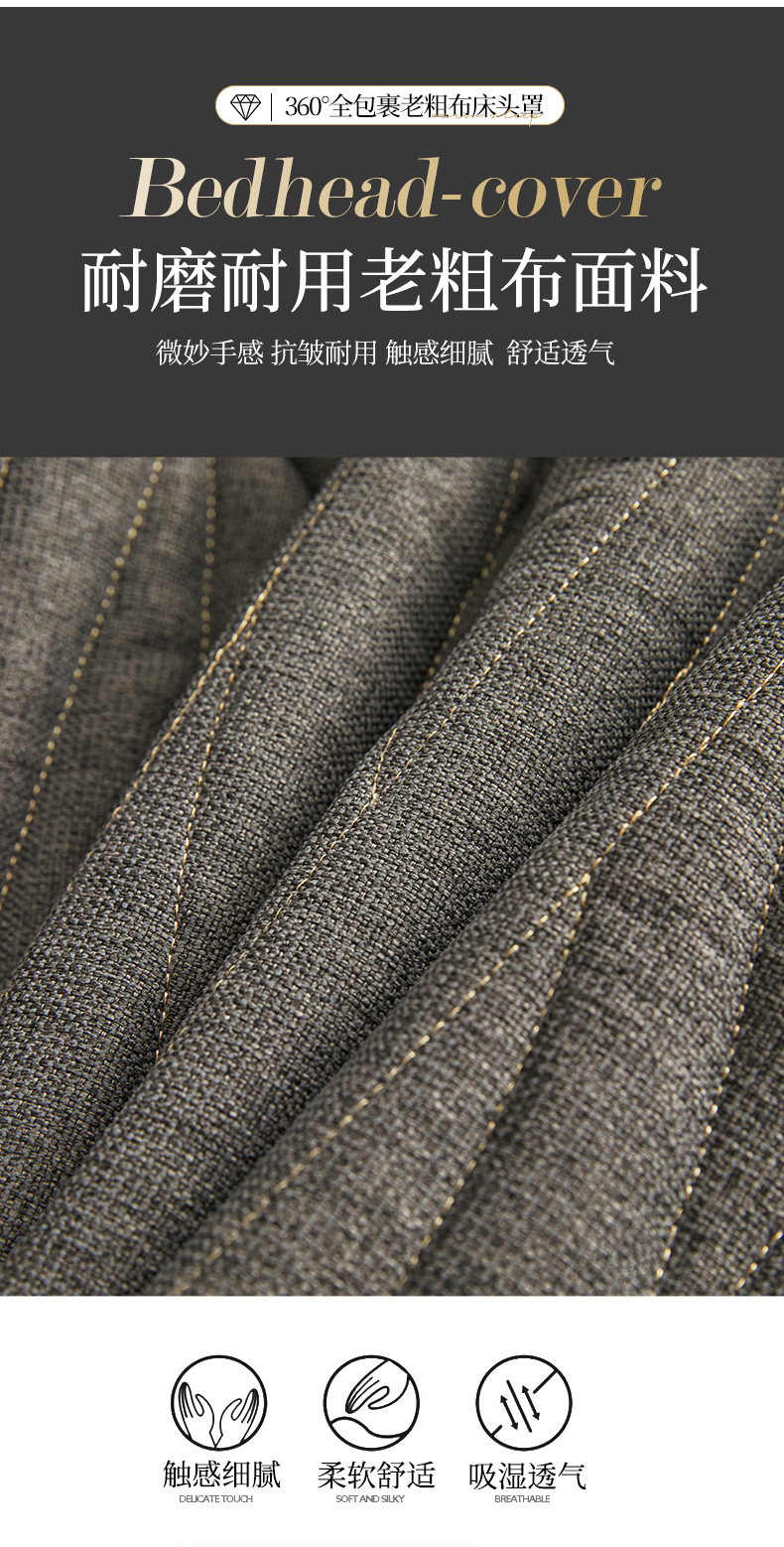 • 91家纺网 家纺一手货源 找家纺 情恒家纺 2025新款老粗布加厚双面可用全包床头罩 老粗布-星辰灰
