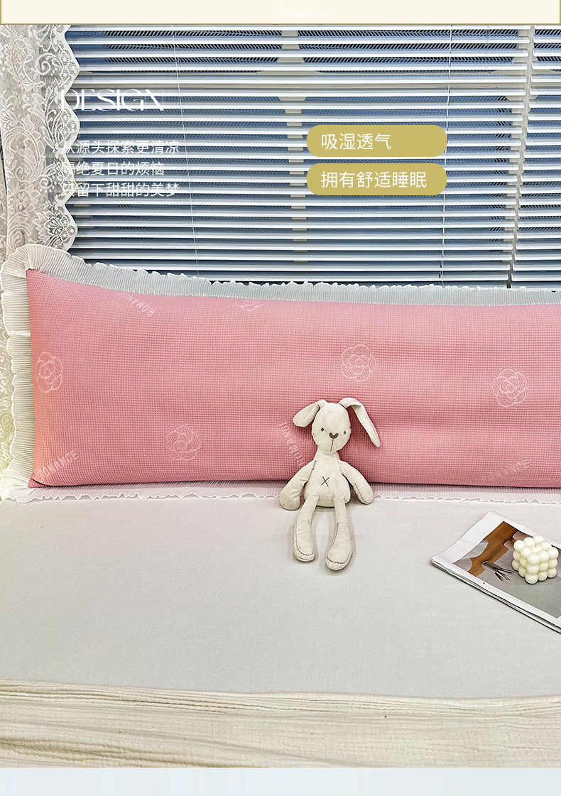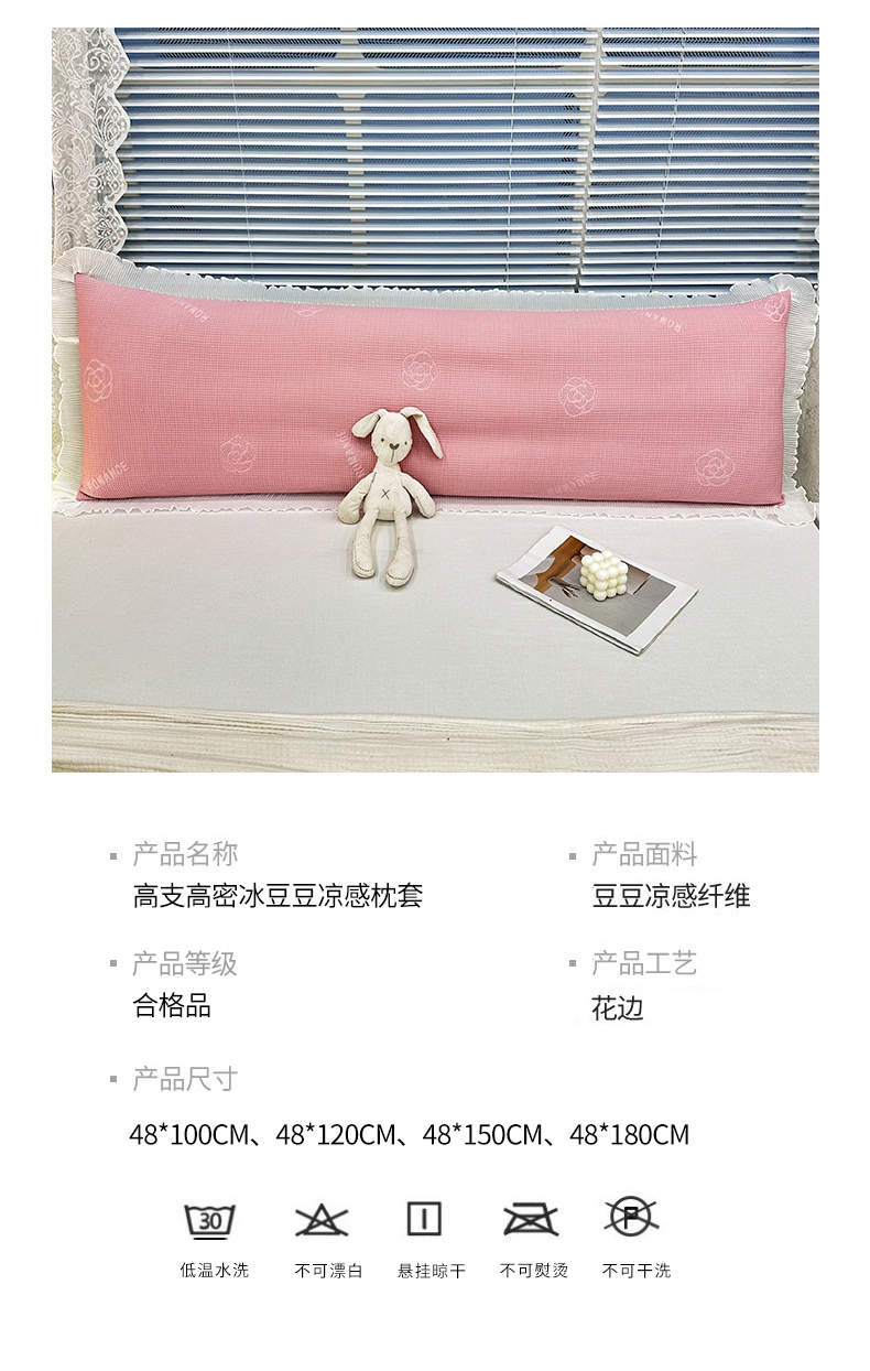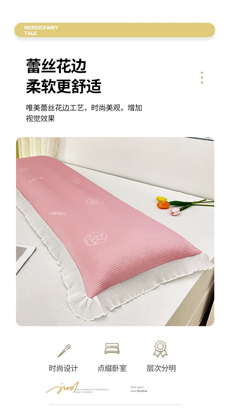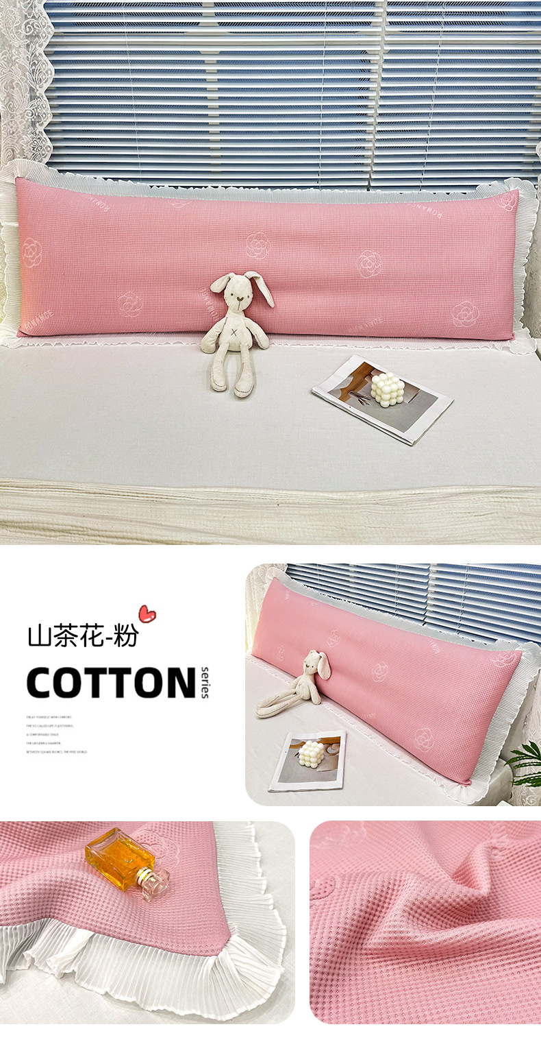 商品名称:雨彤家纺 2025新款冰豆豆蕾丝花边双人长枕套单品枕套枕套单件 山茶花-粉