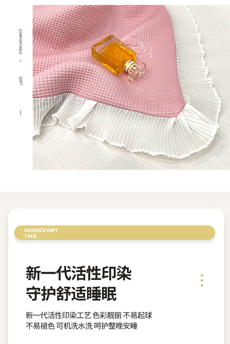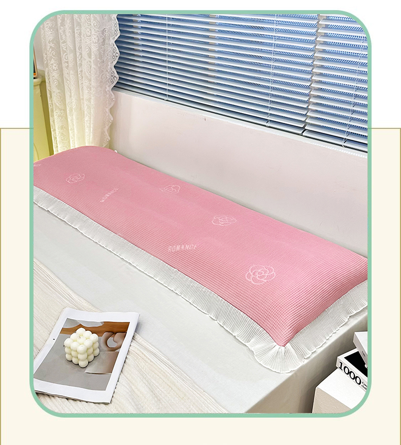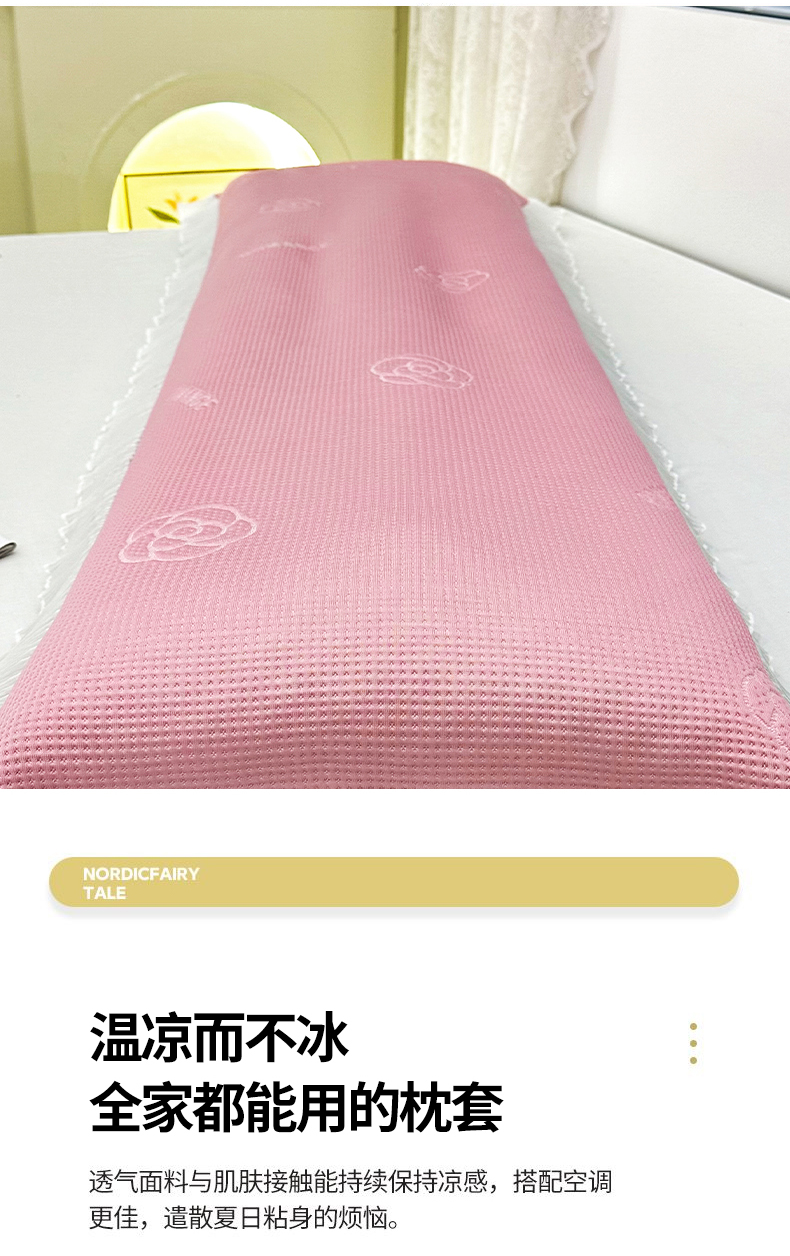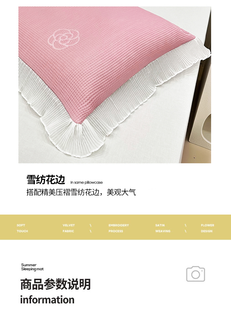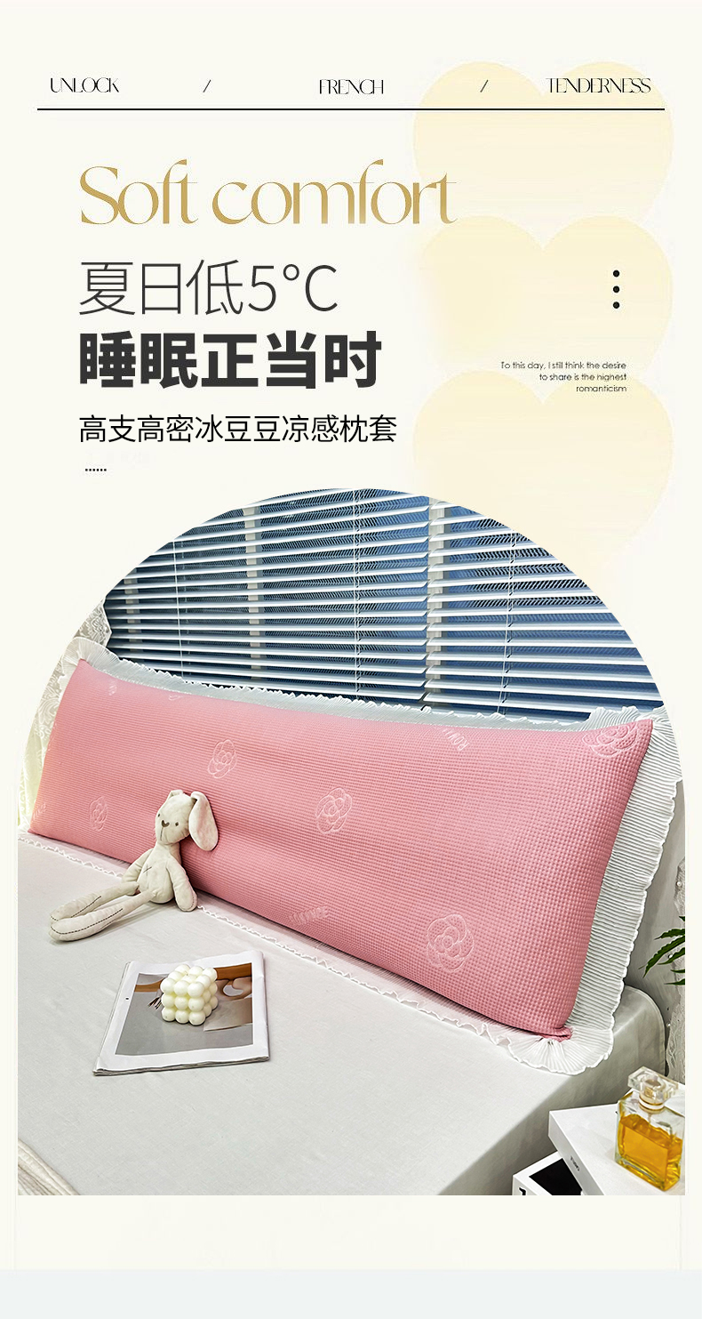 商品名称:雨彤家纺 2025新款冰豆豆蕾丝花边双人长枕套单品枕套枕套单件 山茶花-粉