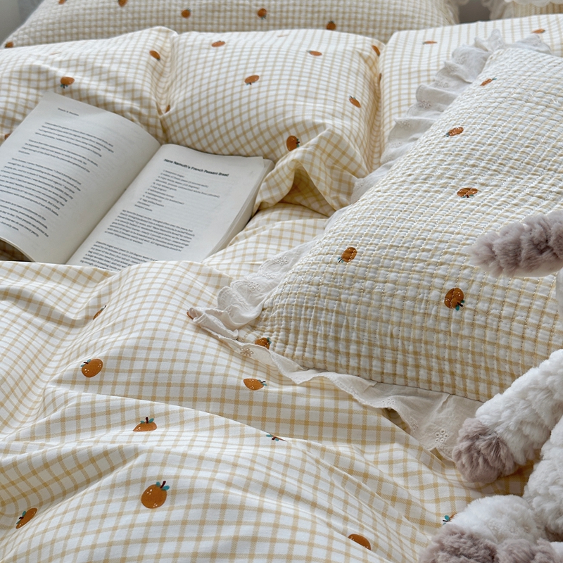 商品名称:佰织鑫2025新款纯棉砂洗全棉床盖款四件套-花蔓系列 橙意