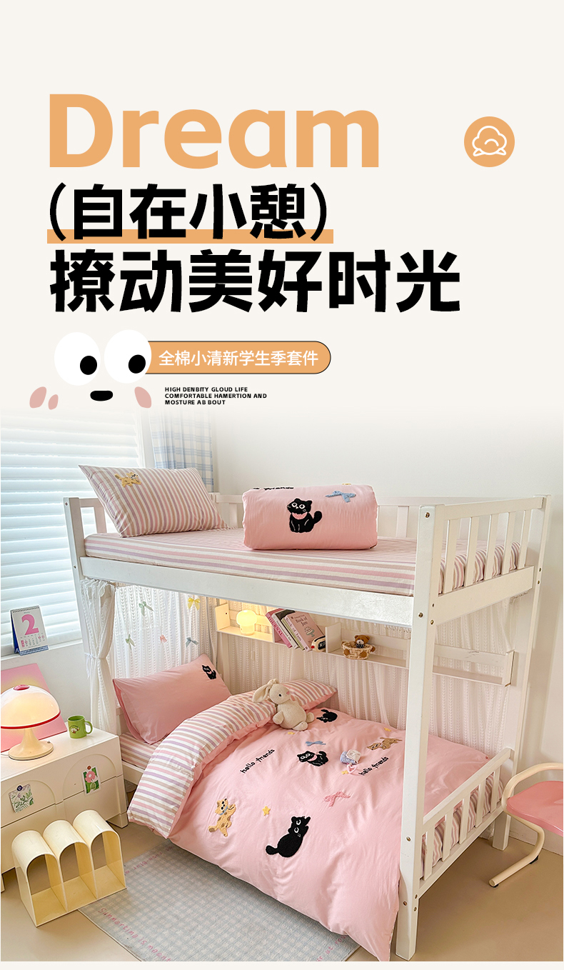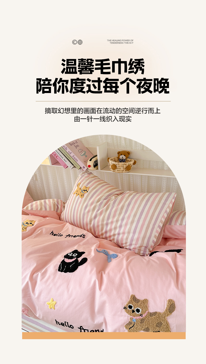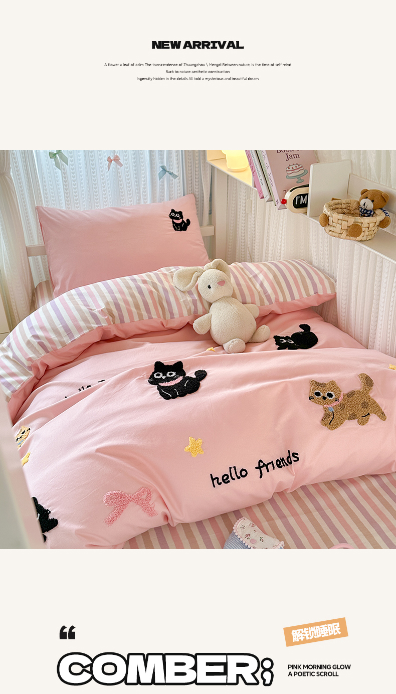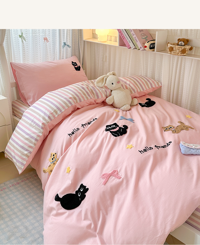当前位置: 91家纺网 > 商品网购 > 床品套件 > 四件套 > 全棉普通四件套 > 如意朵 2025新款全棉小清新绣花学生季三四件套 猫咪家族