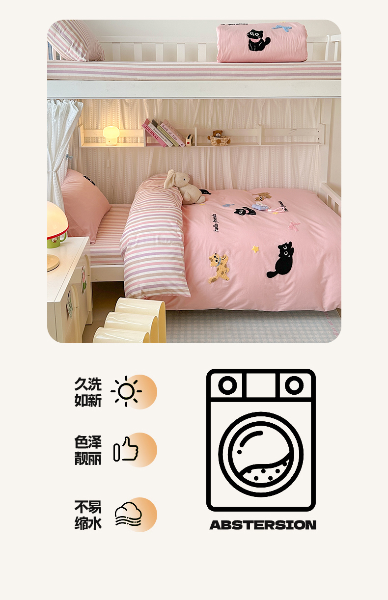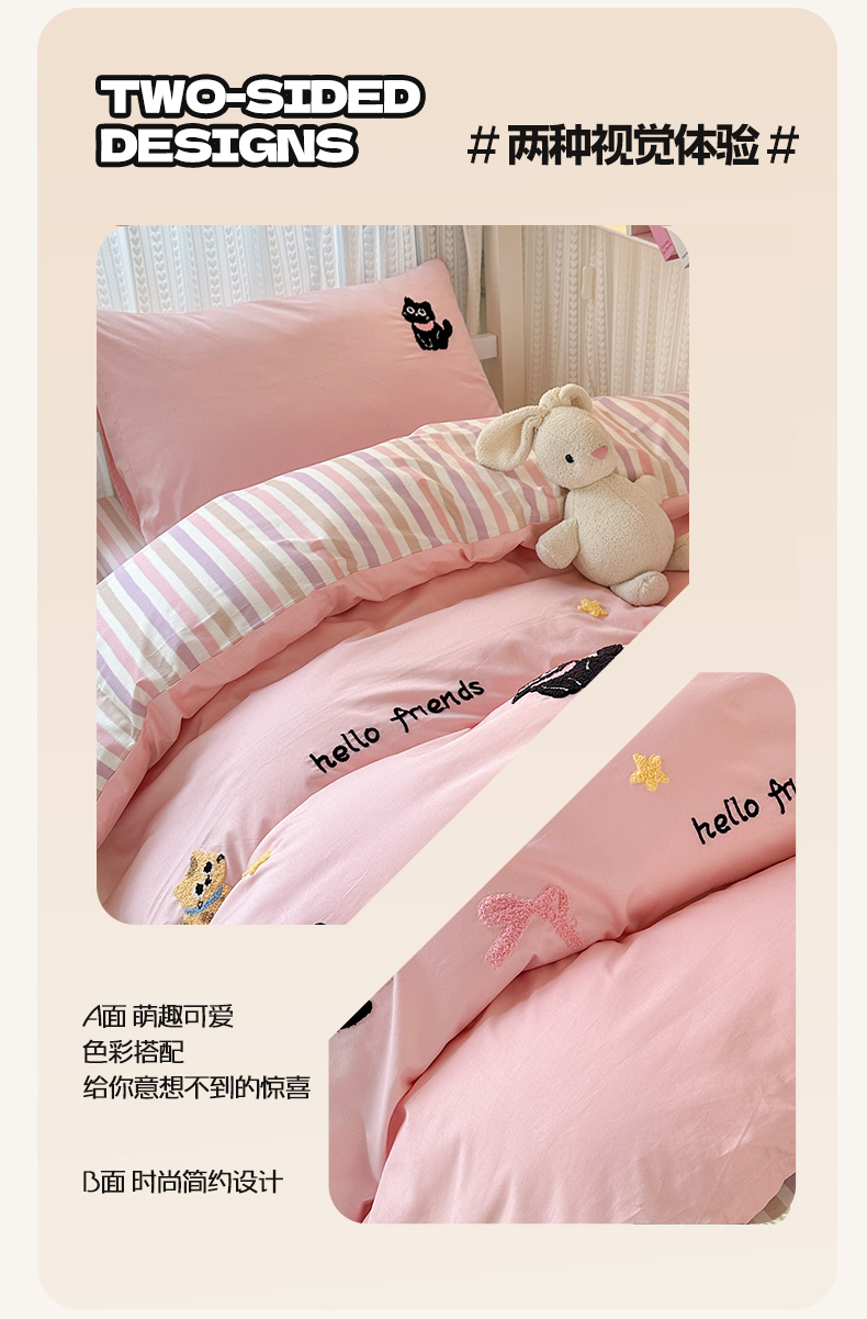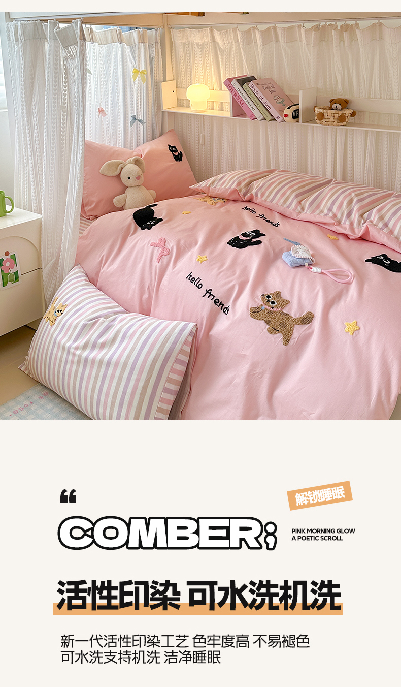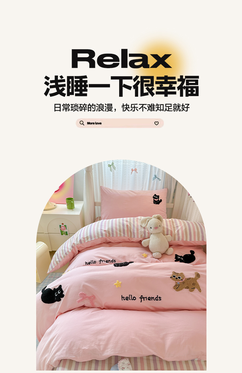 当前位置: 91家纺网 > 商品网购 > 床品套件 > 四件套 > 全棉普通四件套 > 如意朵 2025新款全棉小清新绣花学生季三四件套 猫咪家族