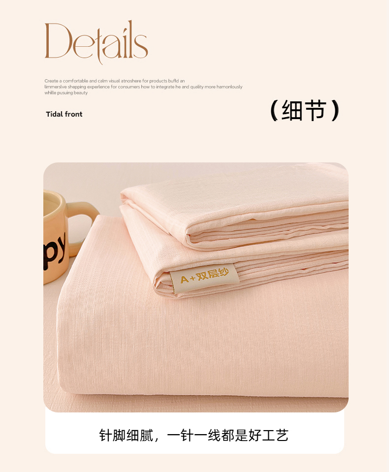 • 91家纺网 家纺一手货源 找家纺 彩韵家纺 2025新款木m双层纱床单 肉桂粉