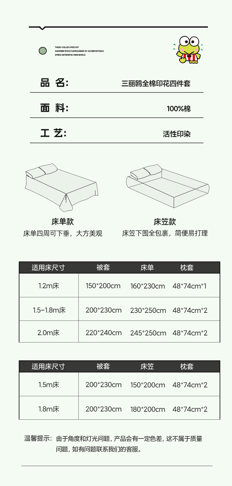 商品名称:蓝邻家纺 2025年新款三丽鸥正版授权全棉印花四件套系列-大床图 格子大眼蛙