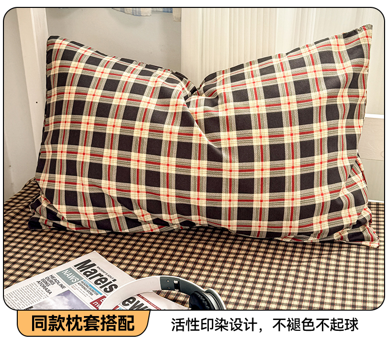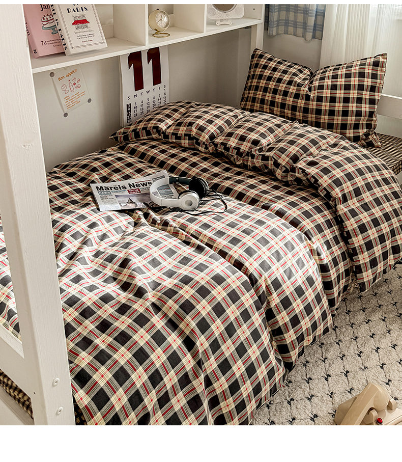 (总)多品家纺 2025新款简约复古风水洗棉格子四件套,黑小格+黑,柏林+黑,柏林+黑小格,黑小格+杏黄,时光+黑,时光+黑白格
