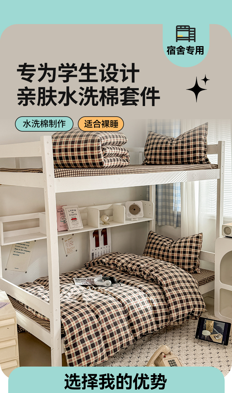 商品名称:(总)多品家纺 2025新款ins风水洗棉学生宿舍上下铺三件套