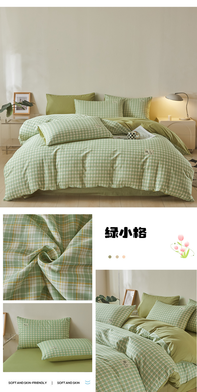 当前位置: 91家纺网 > 商品网购 > 床品套件 > 四件套 > 全棉普通四件套 > 莱通家纺 2025新款纯色双拼四件套 绿小格