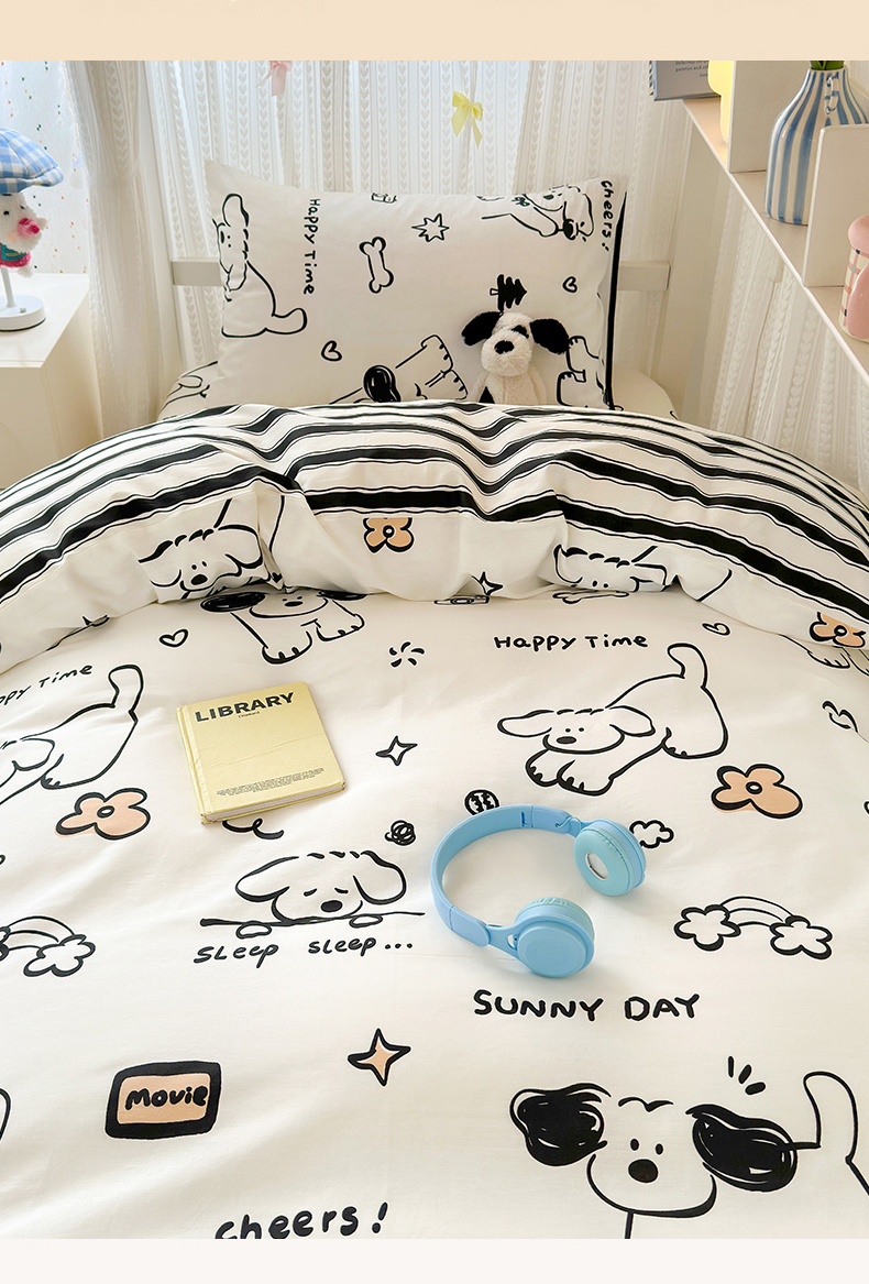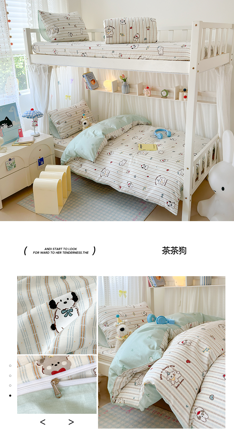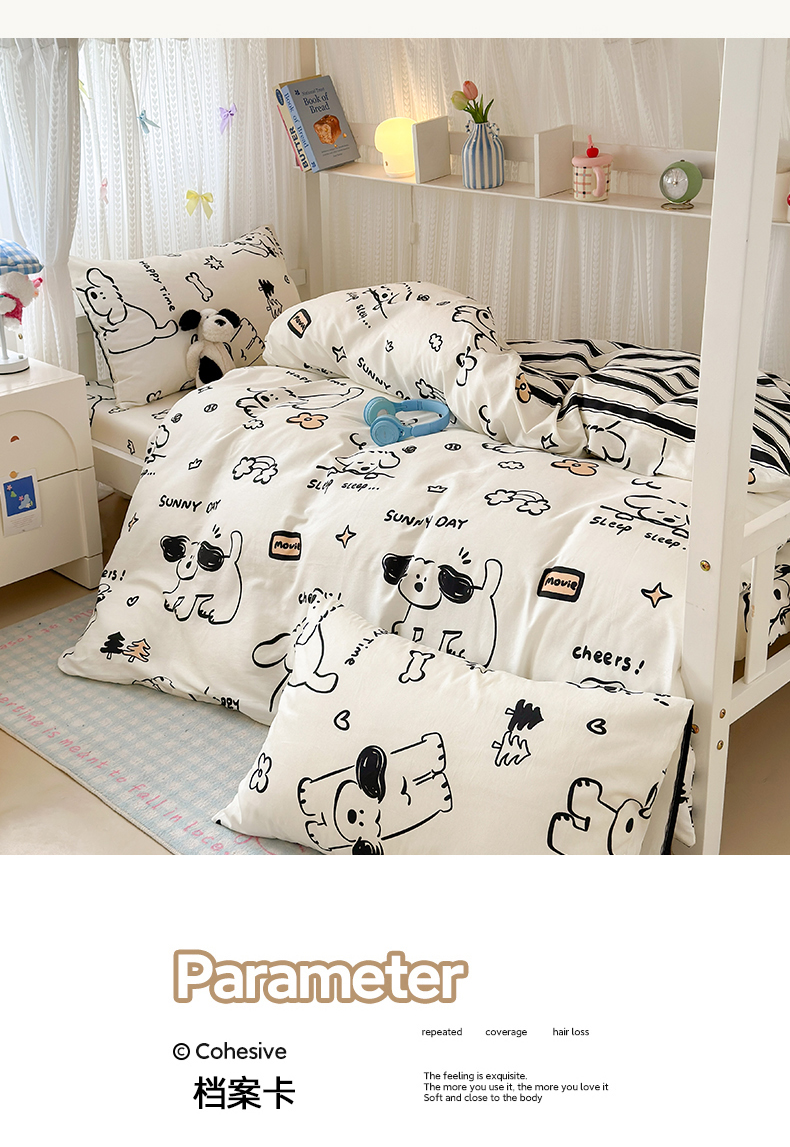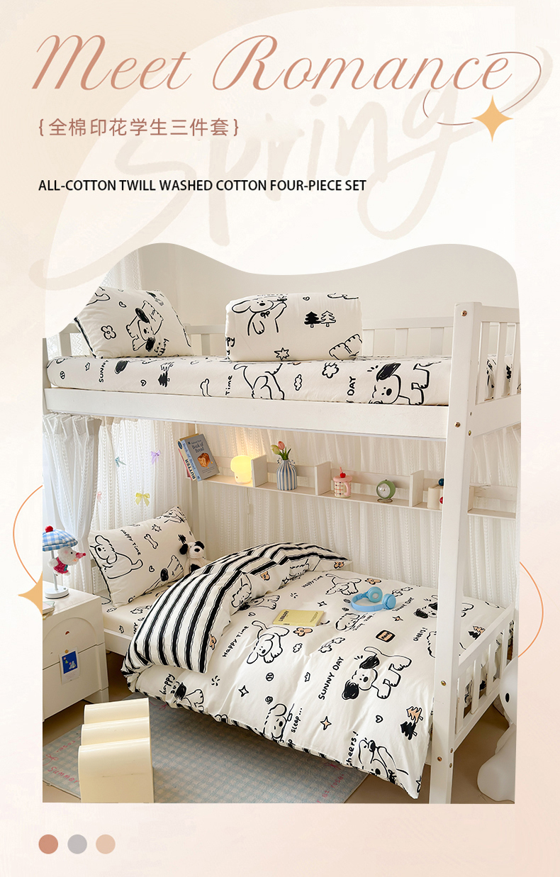 当前位置: 91家纺网 > 商品网购 > 床品套件 > 三件套 > 曼之夏 2025新款全棉纯棉印花学生宿舍上下铺三件套 嗨皮狗