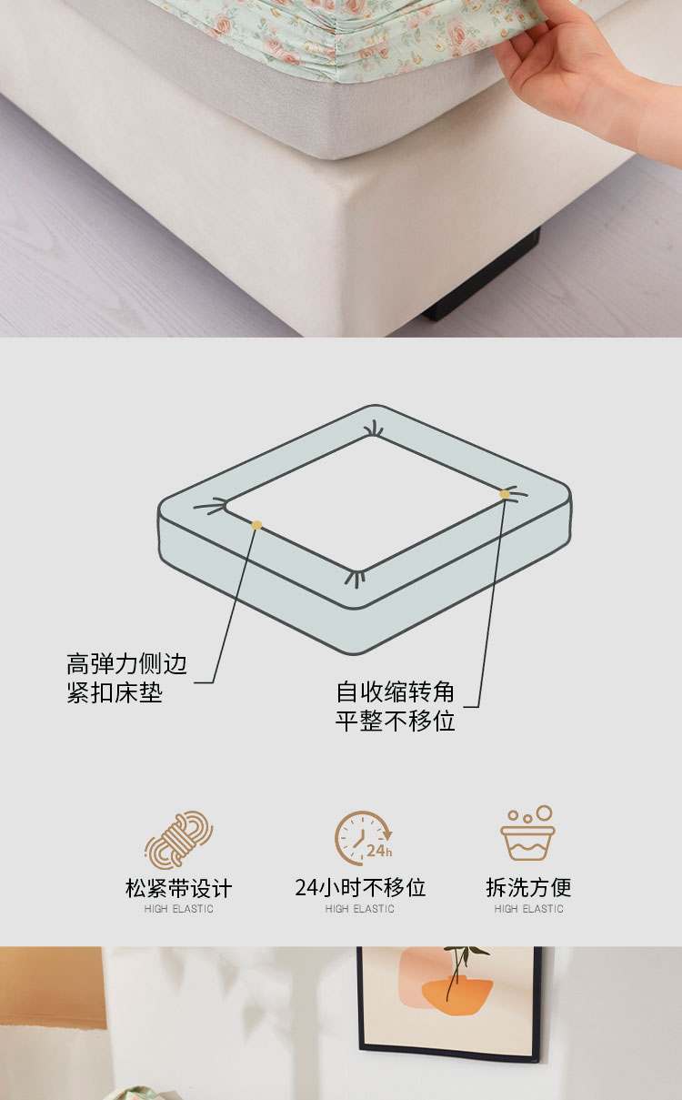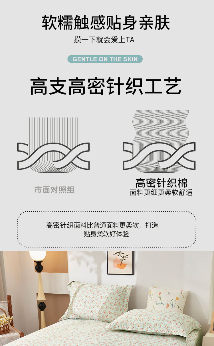 商品名称:乐居家纺 2025新款针织棉双层纱单件床笠 语恋