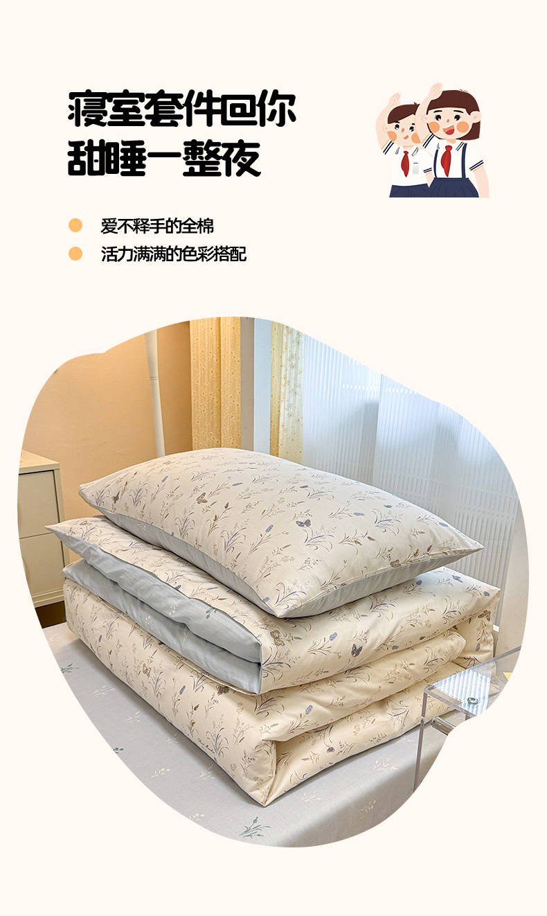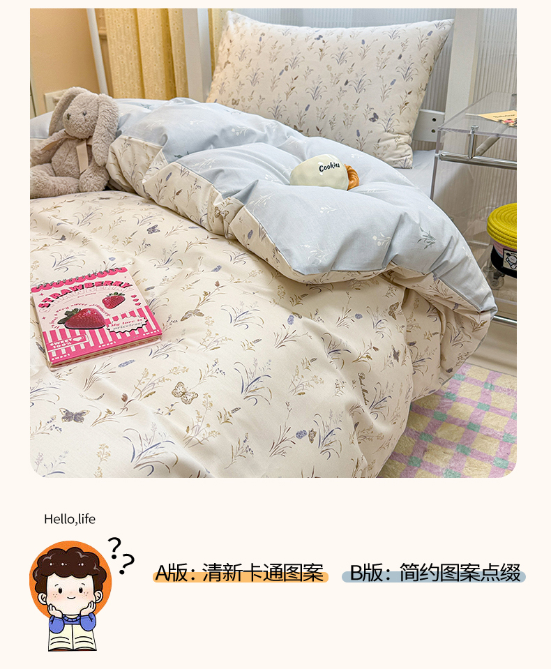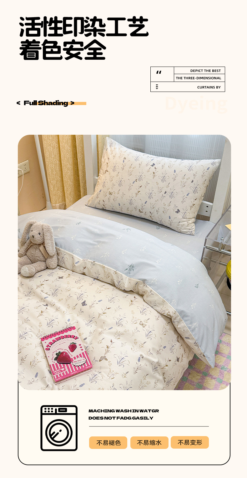 当前位置: 91家纺网 > 商品网购 > 床品套件 > 三件套 > 小懒猪 2025新款ins风小红书同款卡通小清新13372全棉纯棉AB版学生上下铺三件套 蝶恋花