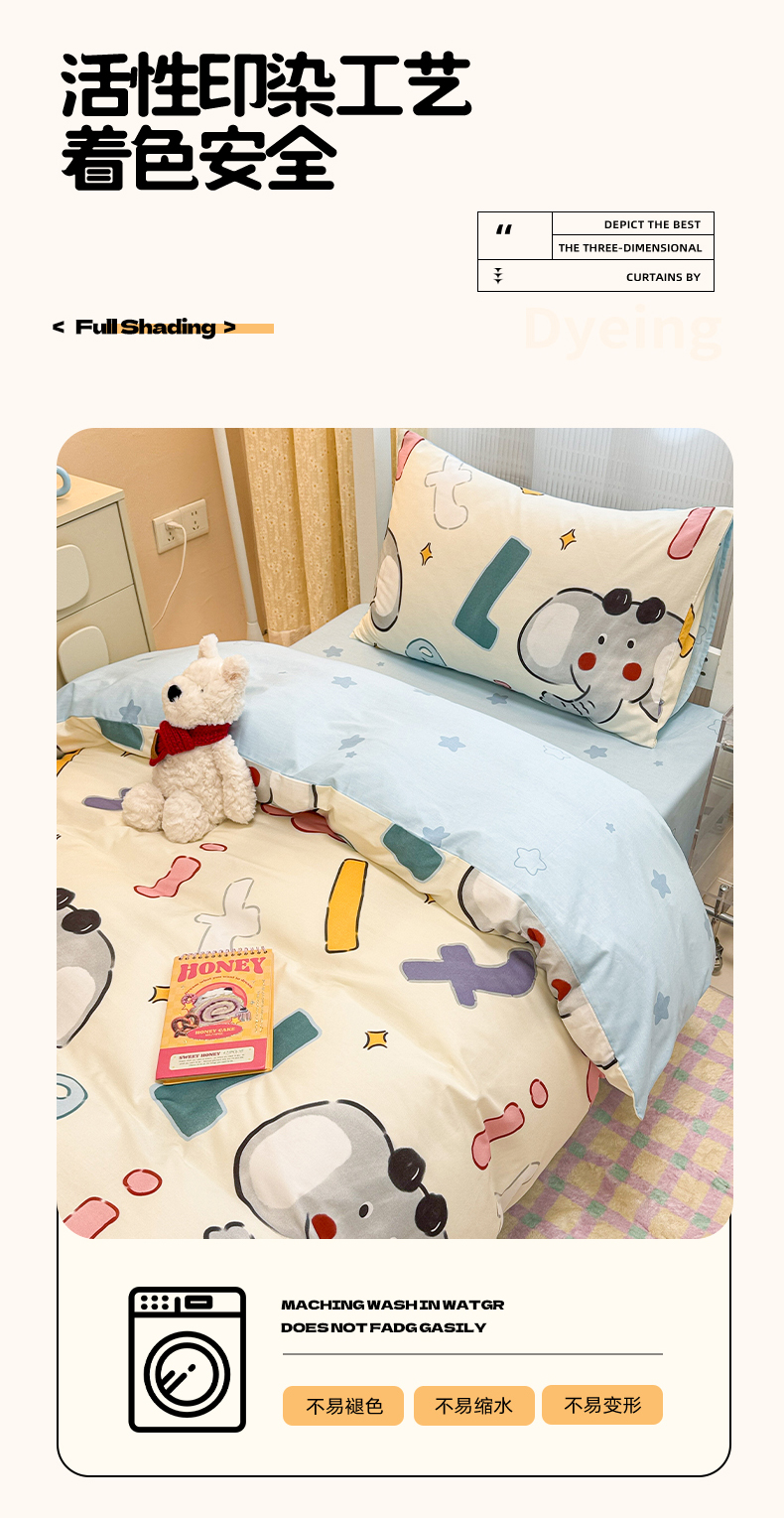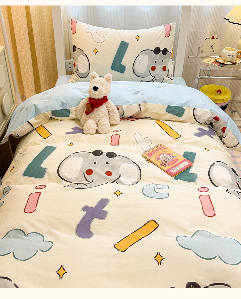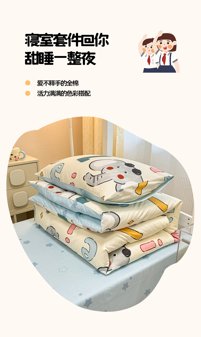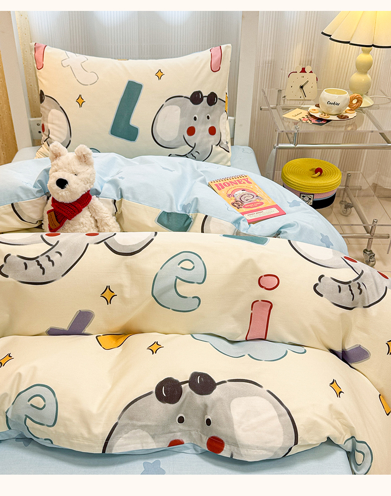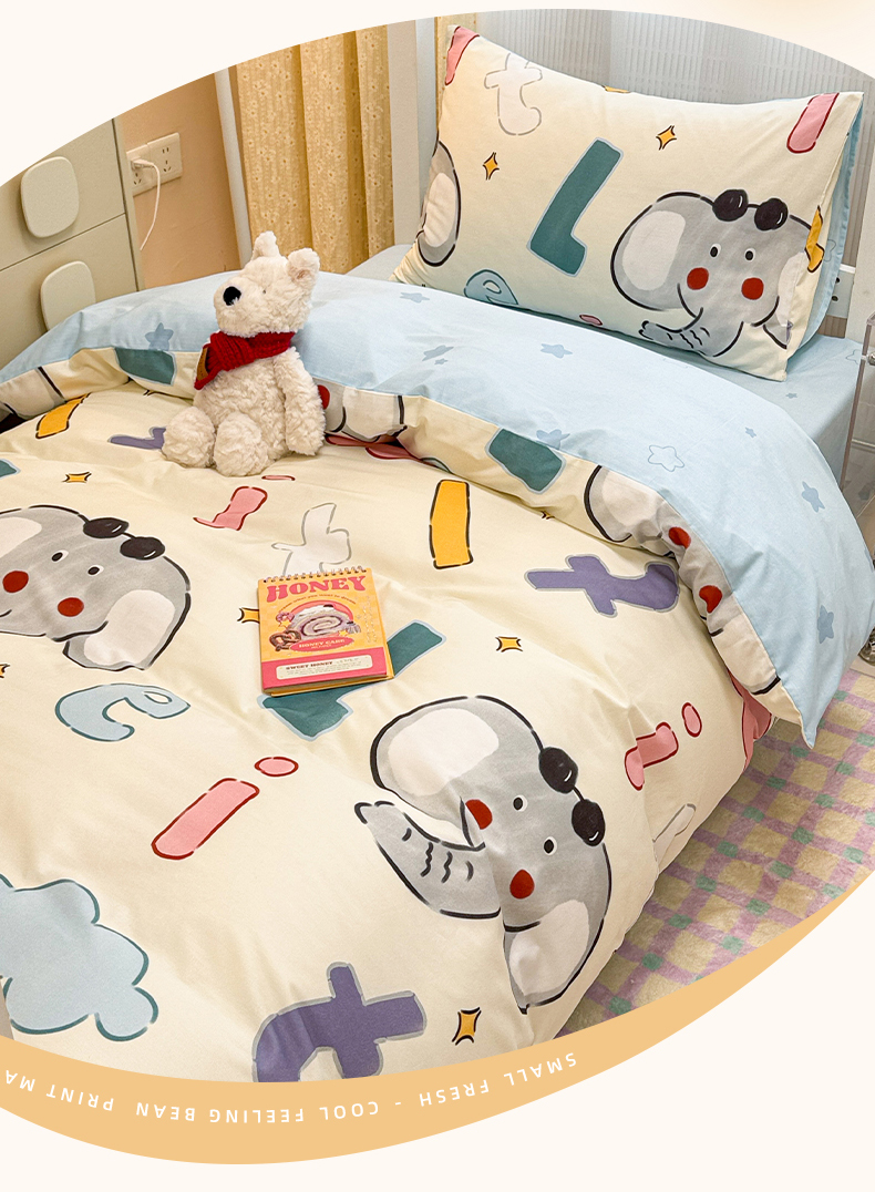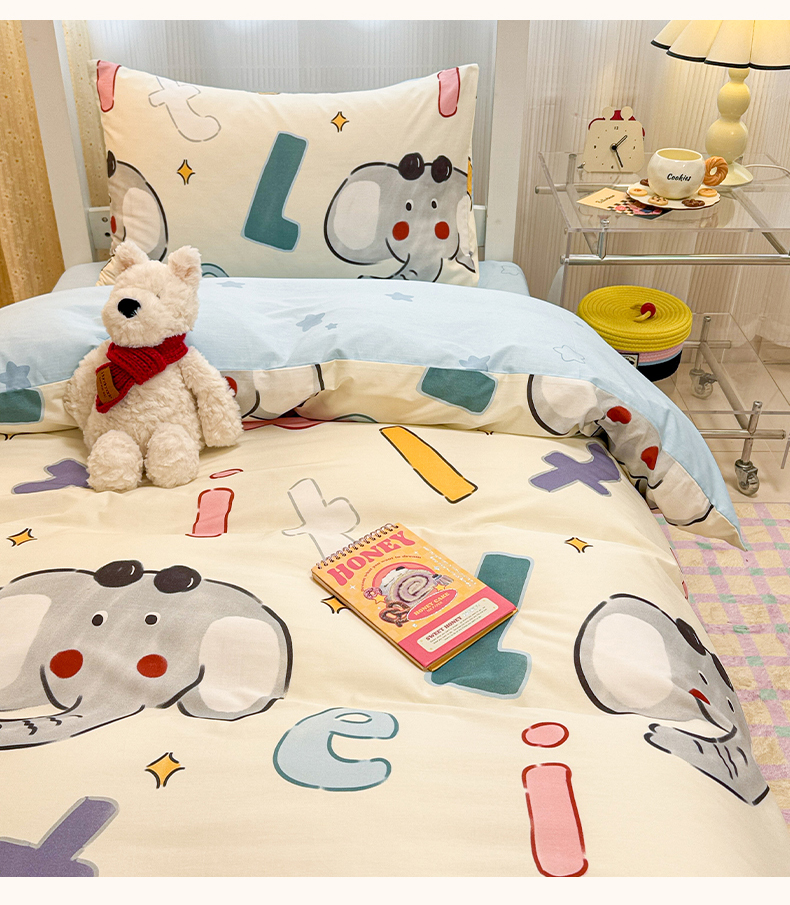 当前位置: 91家纺网 > 商品网购 > 床品套件 > 三件套 > 小懒猪 2025新款ins风小红书同款卡通小清新13372全棉纯棉AB版学生上下铺三件套 字母小象