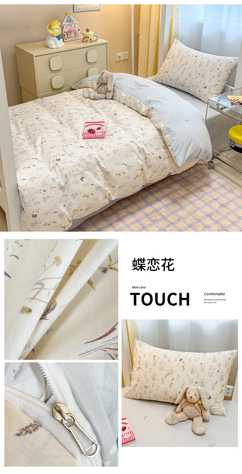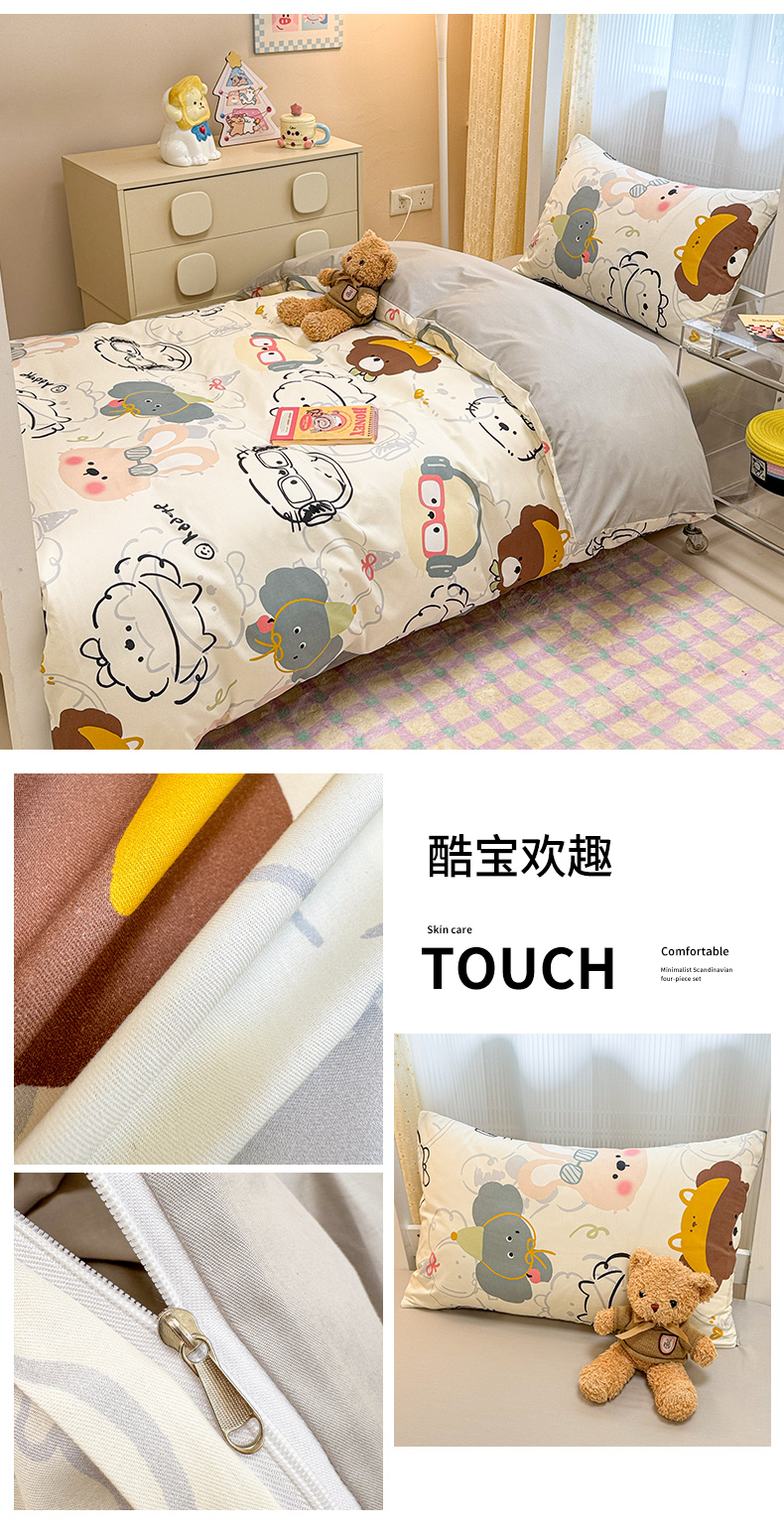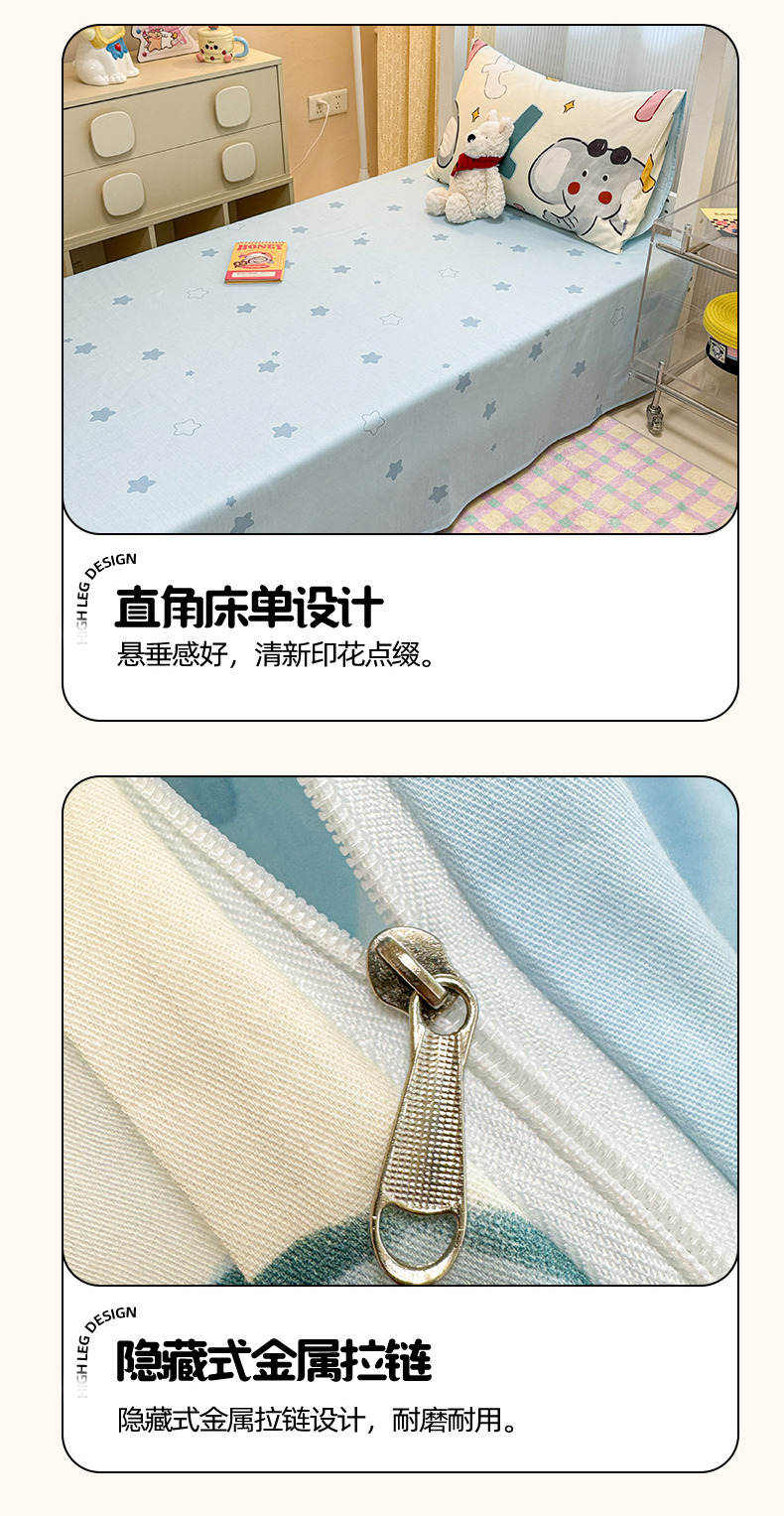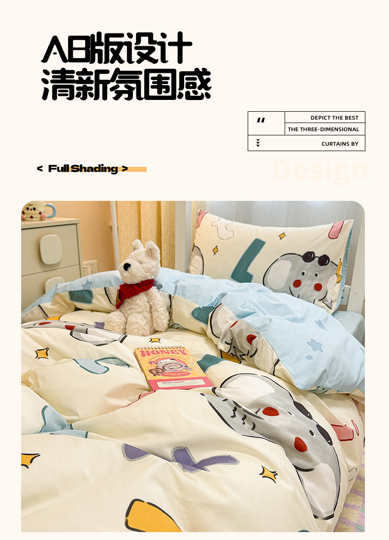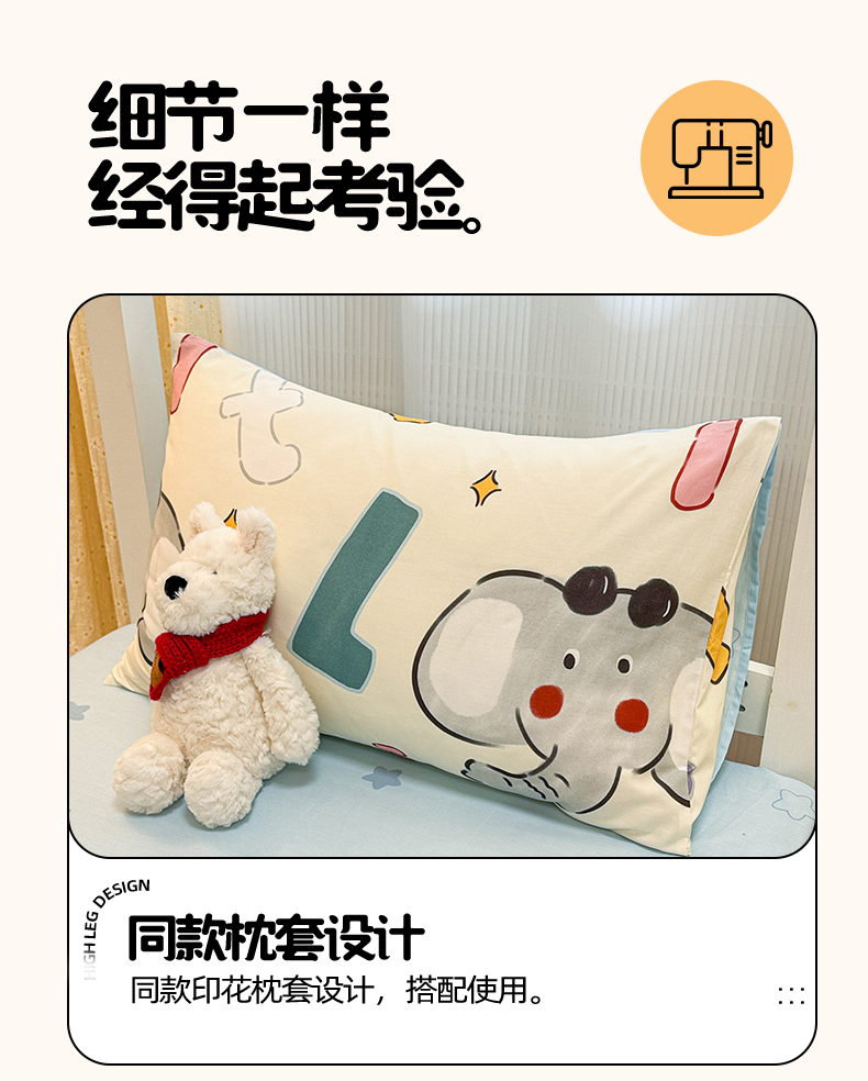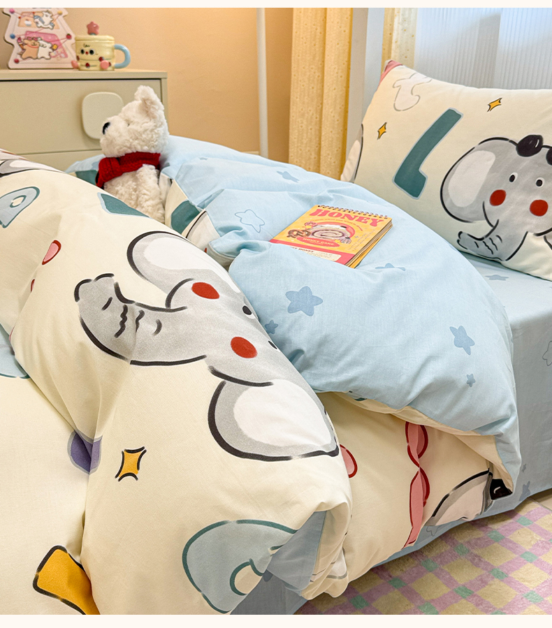 当前位置: 91家纺网 > 商品网购 > 床品套件 > 三件套 > 小懒猪 2025新款ins风小红书同款卡通小清新13372全棉纯棉AB版学生上下铺三件套 字母小象
