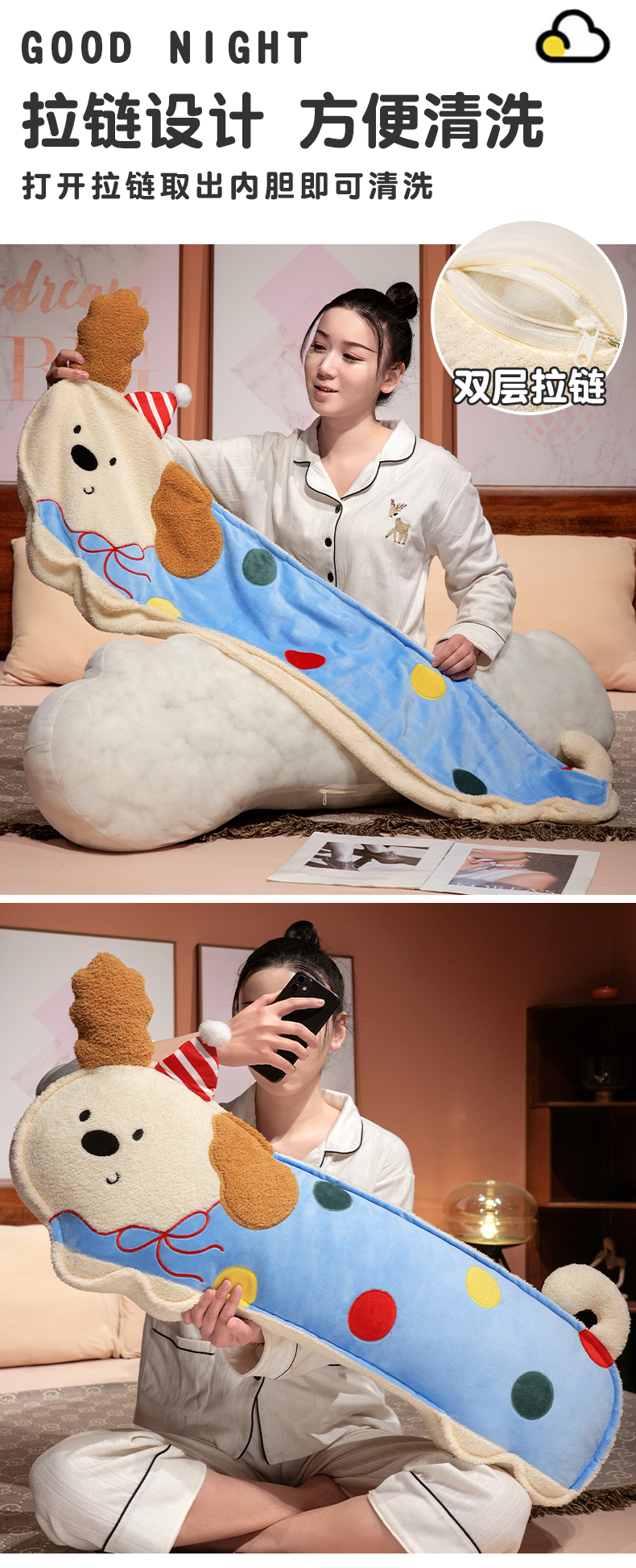 (总)仟亿莱 2025新款压片翘耳小狗长条睡觉抱枕