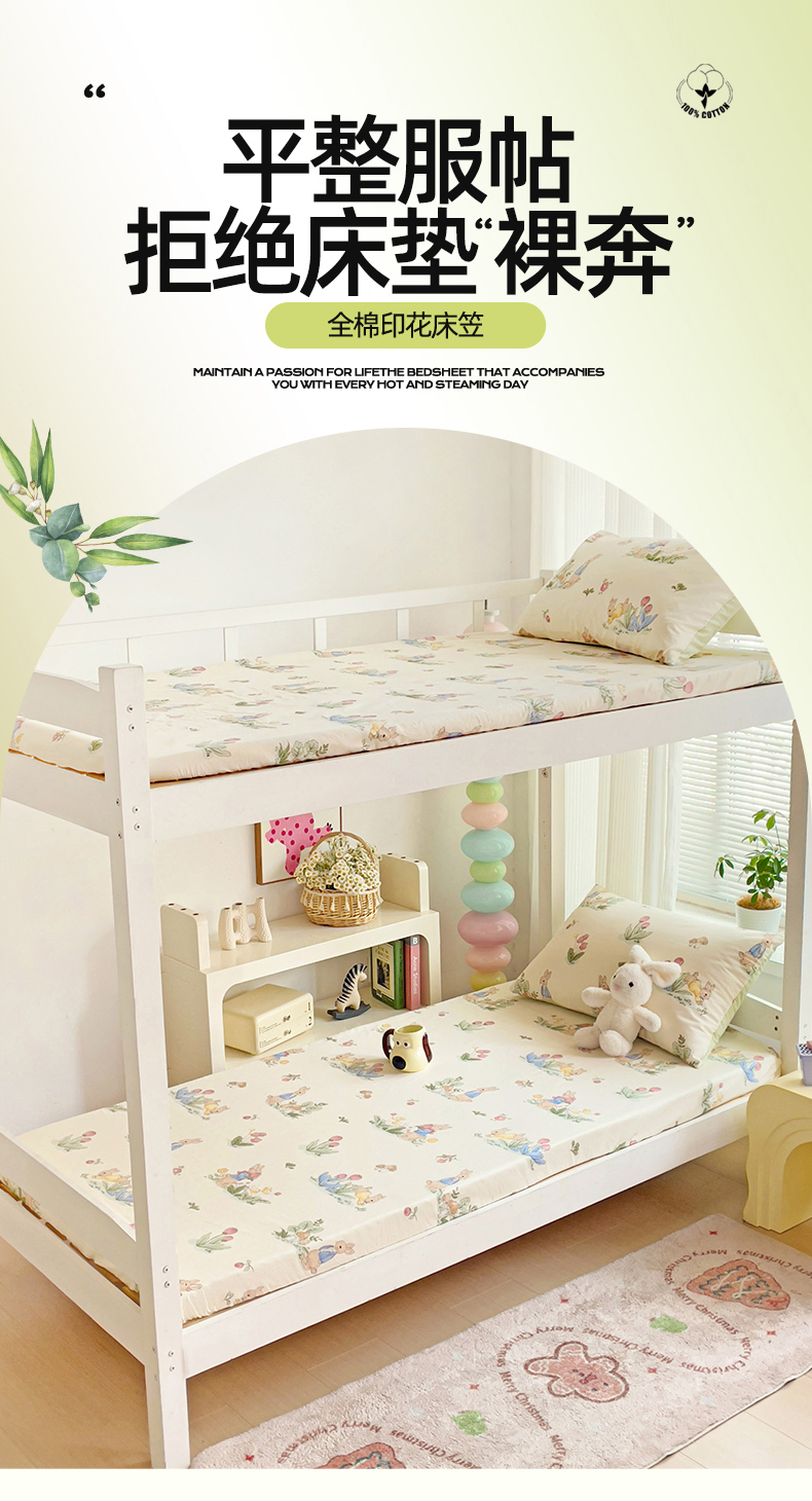 名兮家居 2025新款全棉纯棉13372学生印花上下铺床笠单床笠单品床笠单件床笠 蘑菇小兔