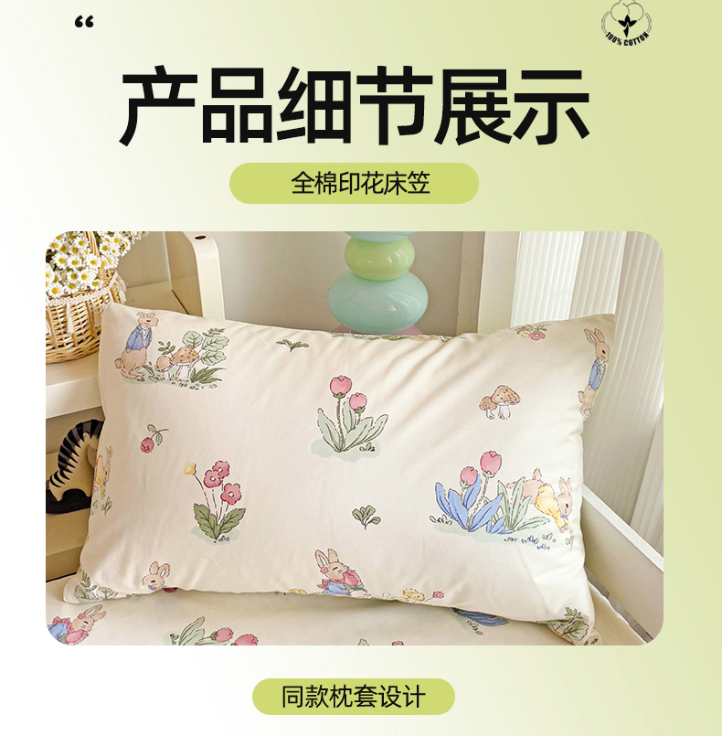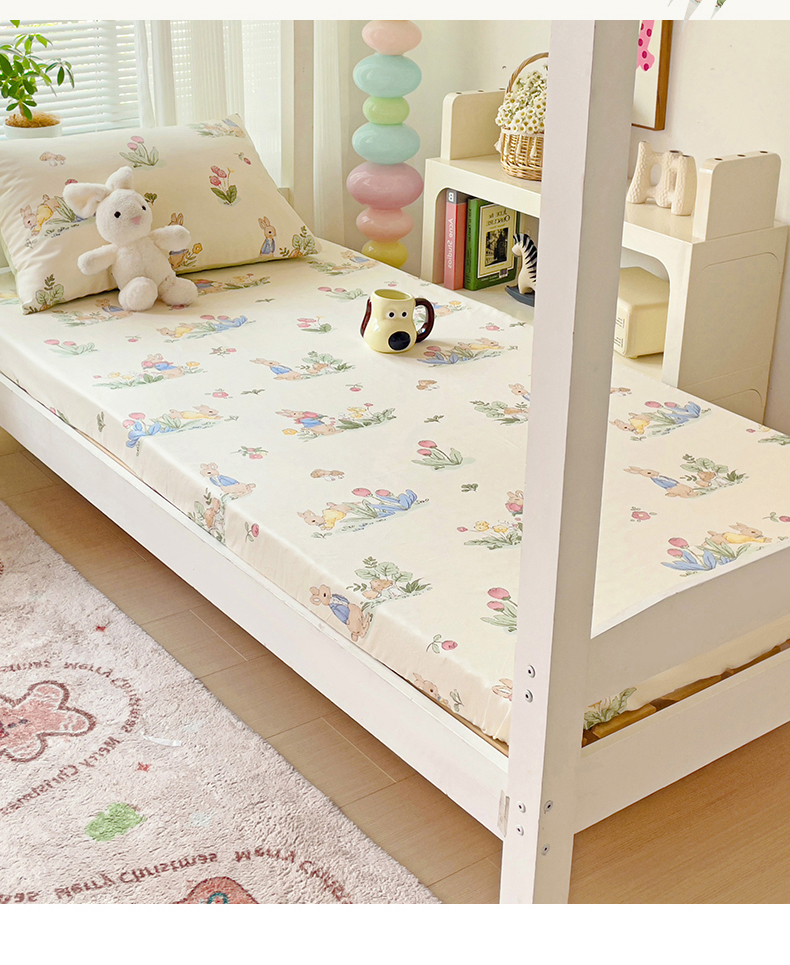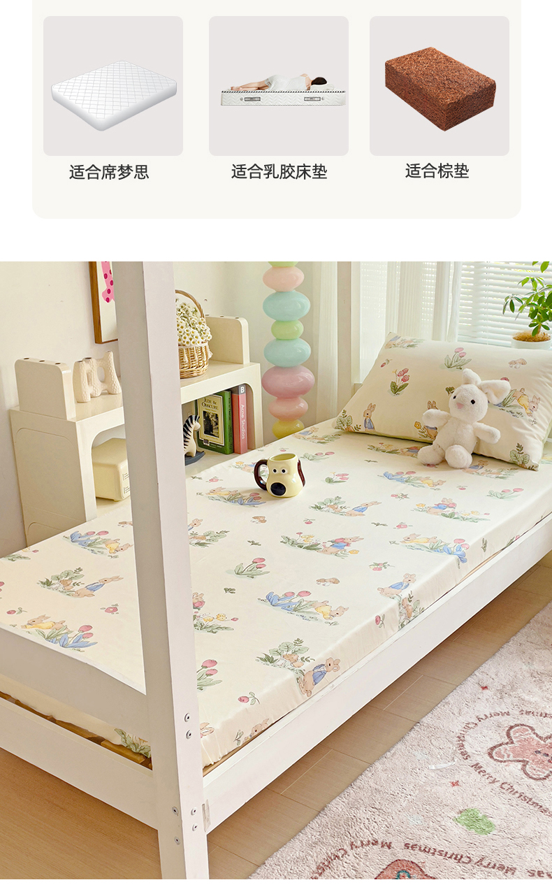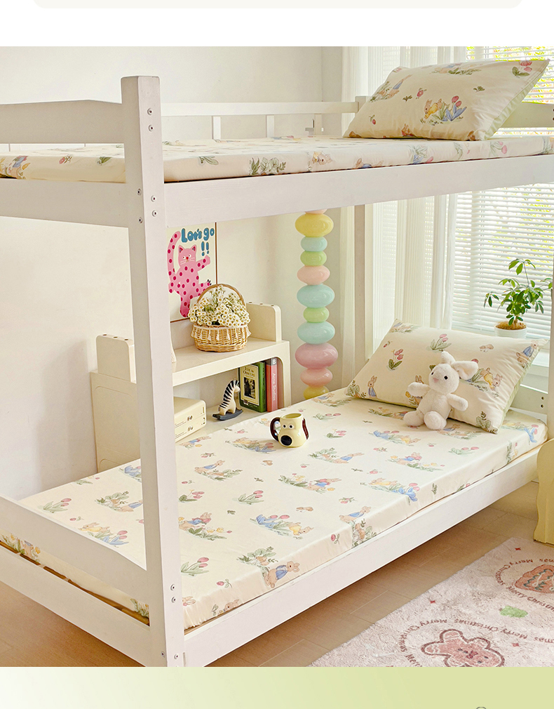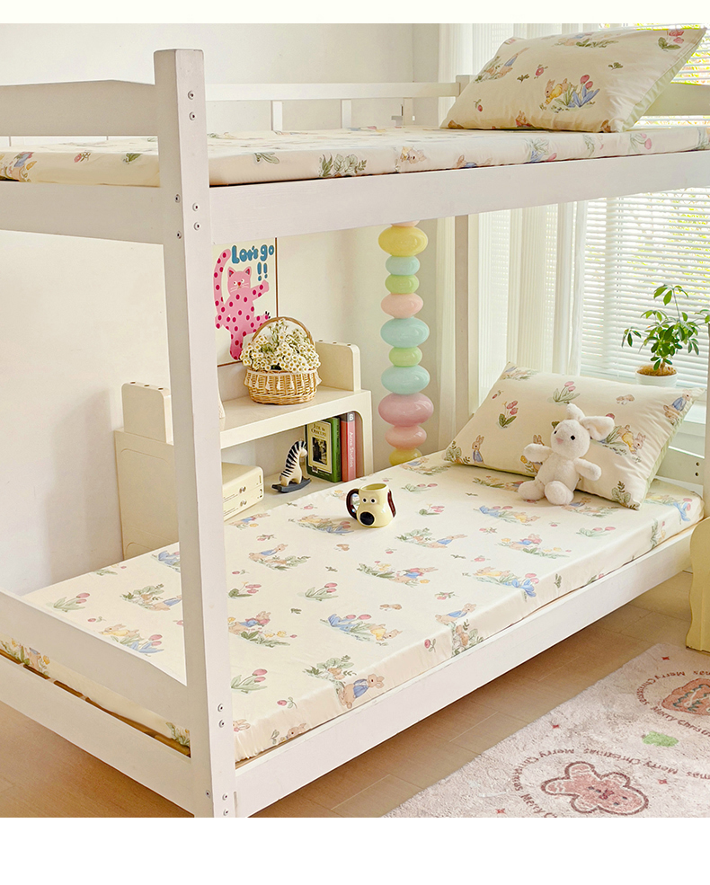 • 91家纺网 家纺一手货源 找家纺 名兮家居 2025新款全棉纯棉13372学生印花上下铺床笠单床笠单品床笠单件床笠 蘑菇小兔