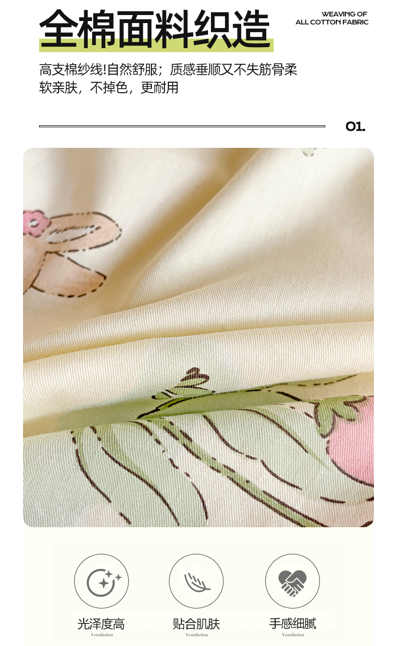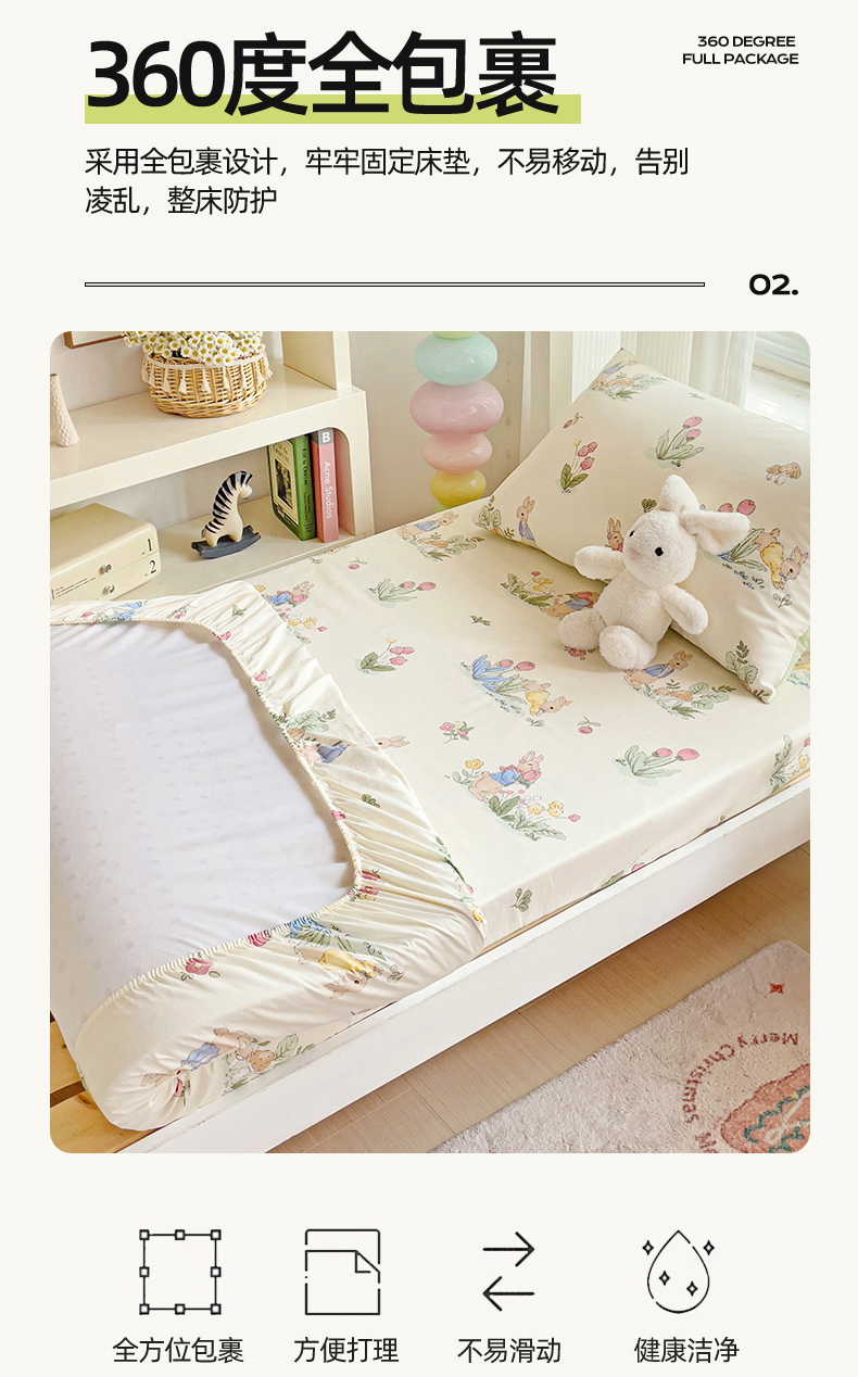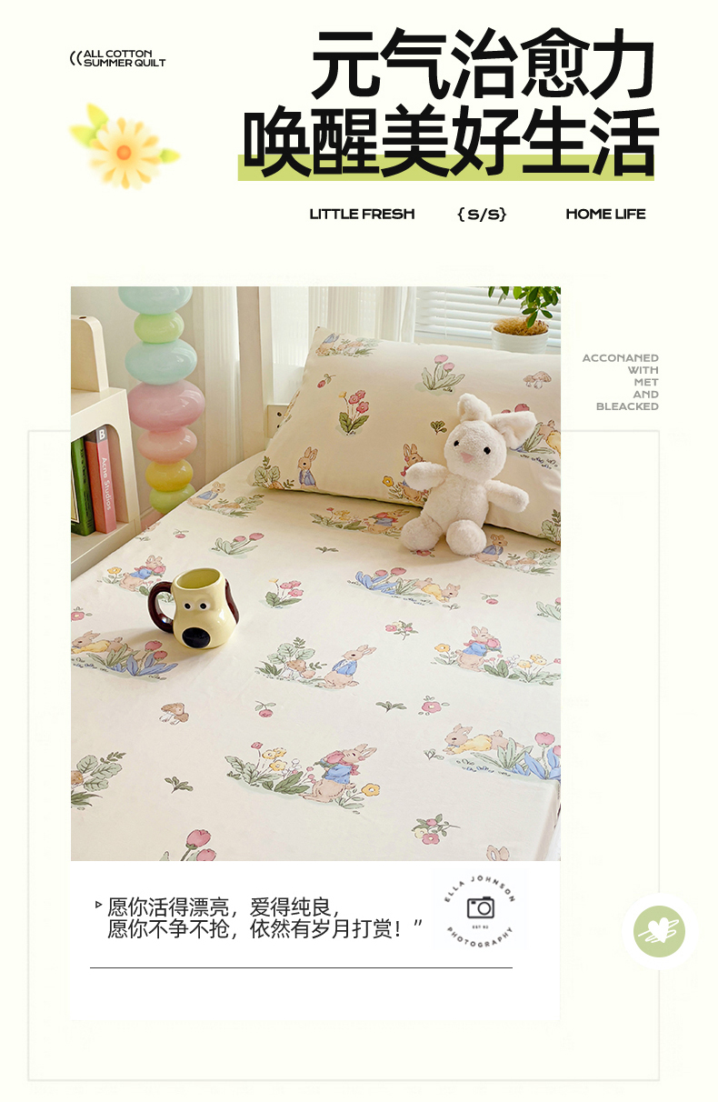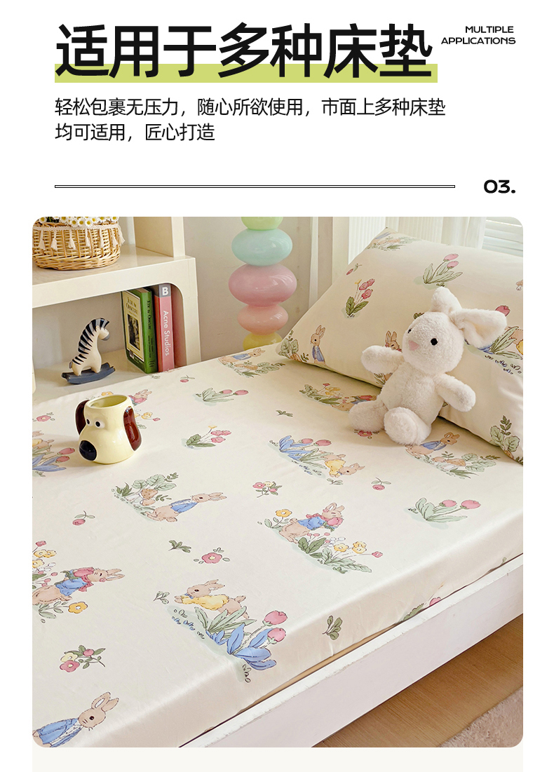 • 91家纺网 家纺一手货源 找家纺 名兮家居 2025新款全棉纯棉13372学生印花上下铺床笠单床笠单品床笠单件床笠 蘑菇小兔