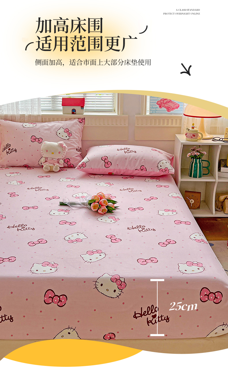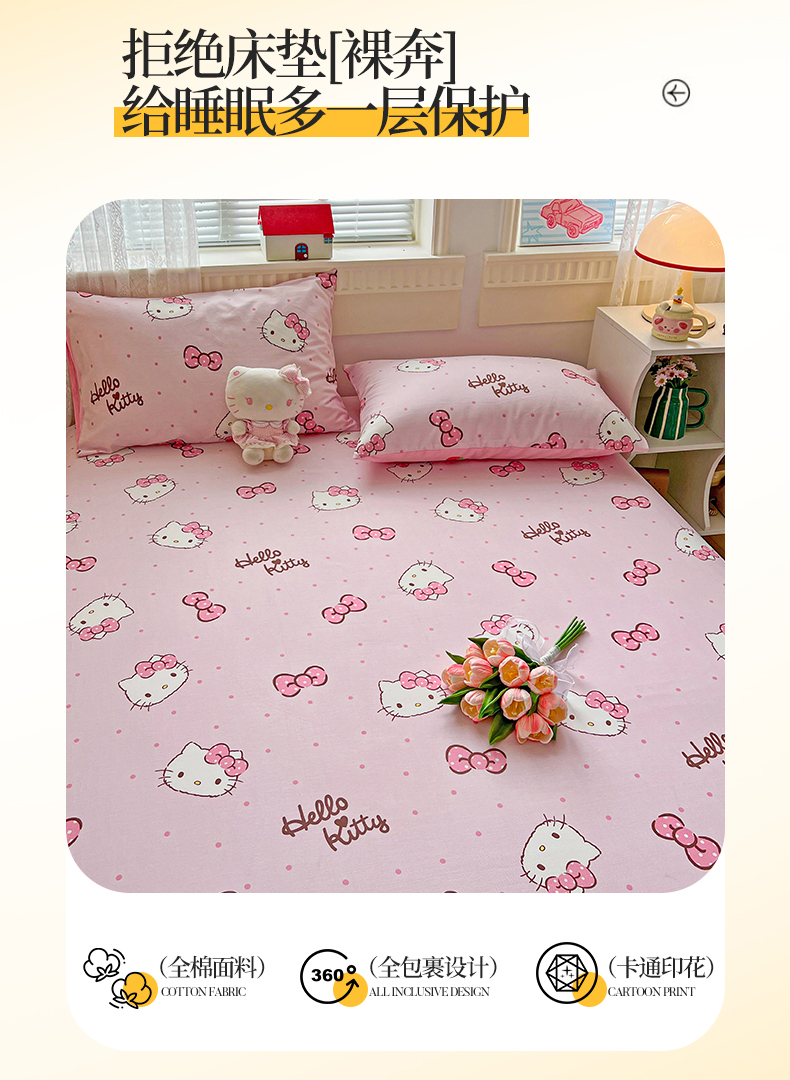 名兮家居 2025新款全棉纯棉13372经典奥特曼-三丽鸥成人床床笠单件单床笠【含防伪标】 呆萌kt