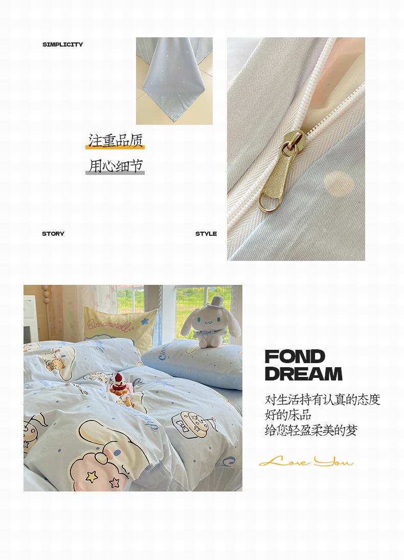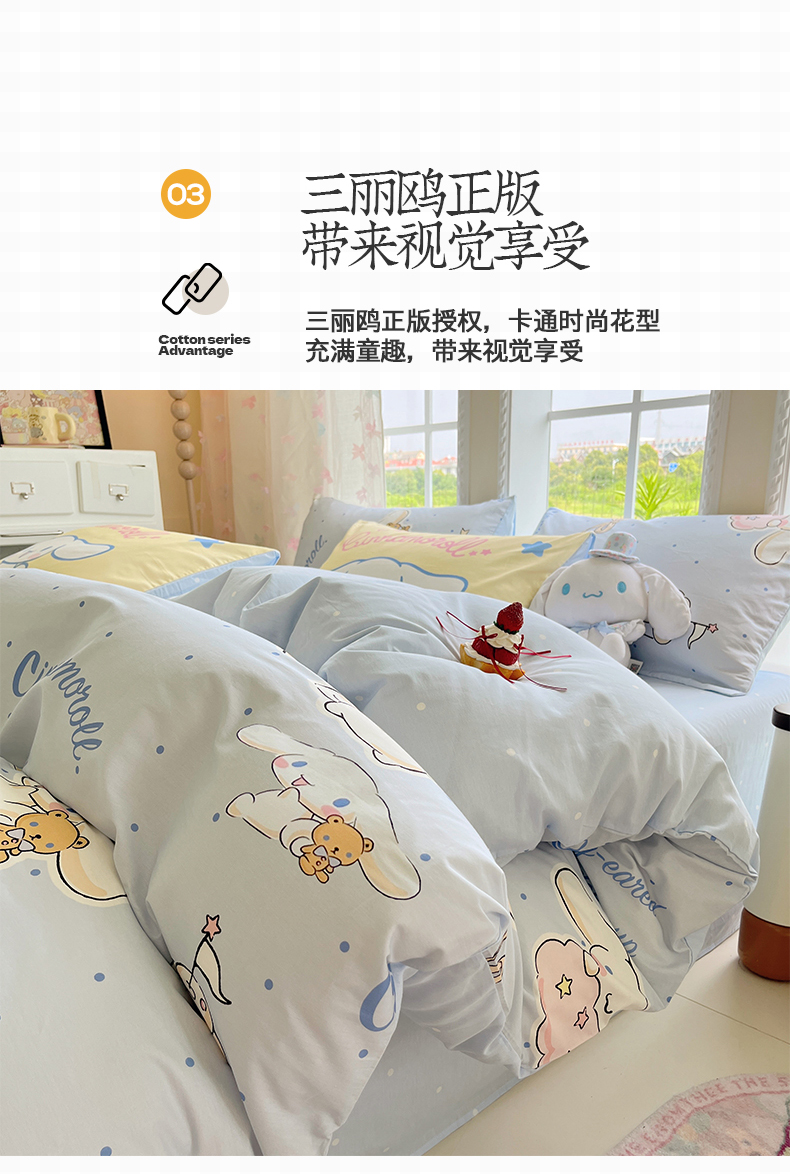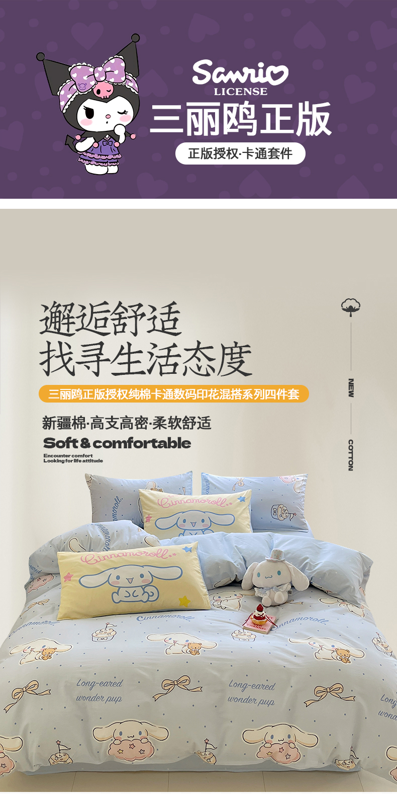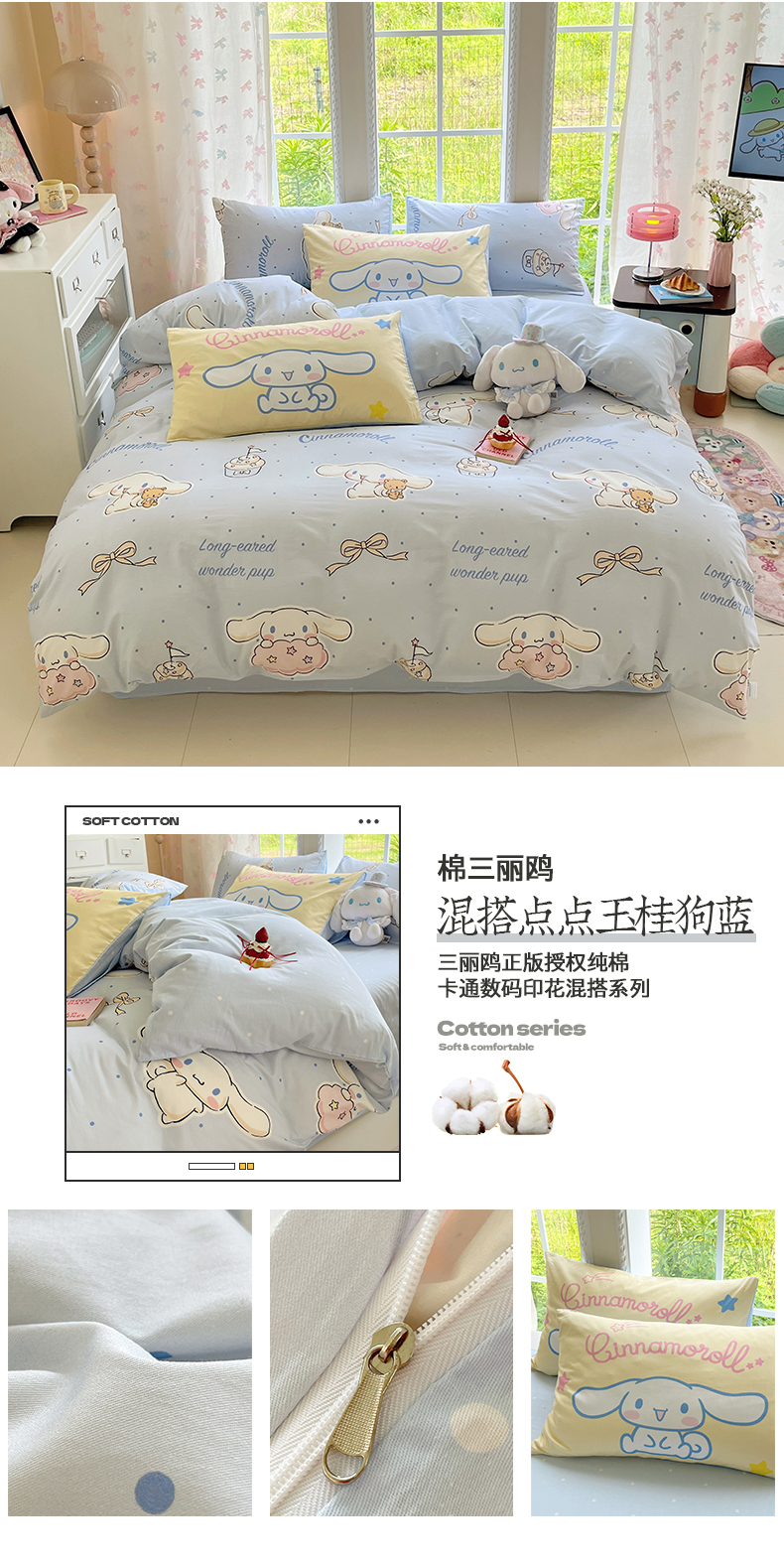 当前位置: 91家纺网 > 商品网购 > 床品套件 > 四件套 > 全棉普通四件套 > 金爱家2025新款三丽鸥正版授权卡通数码印花混搭纯棉印花系列四件套 棉三丽鸥-混搭点点玉桂狗蓝