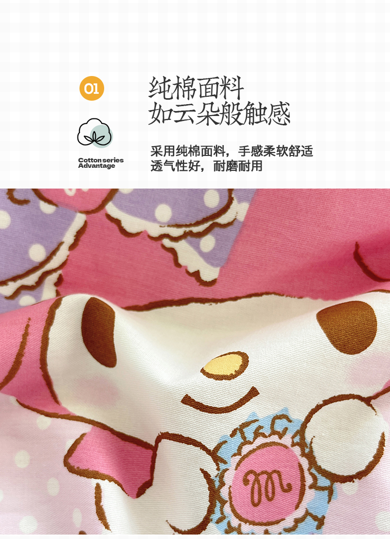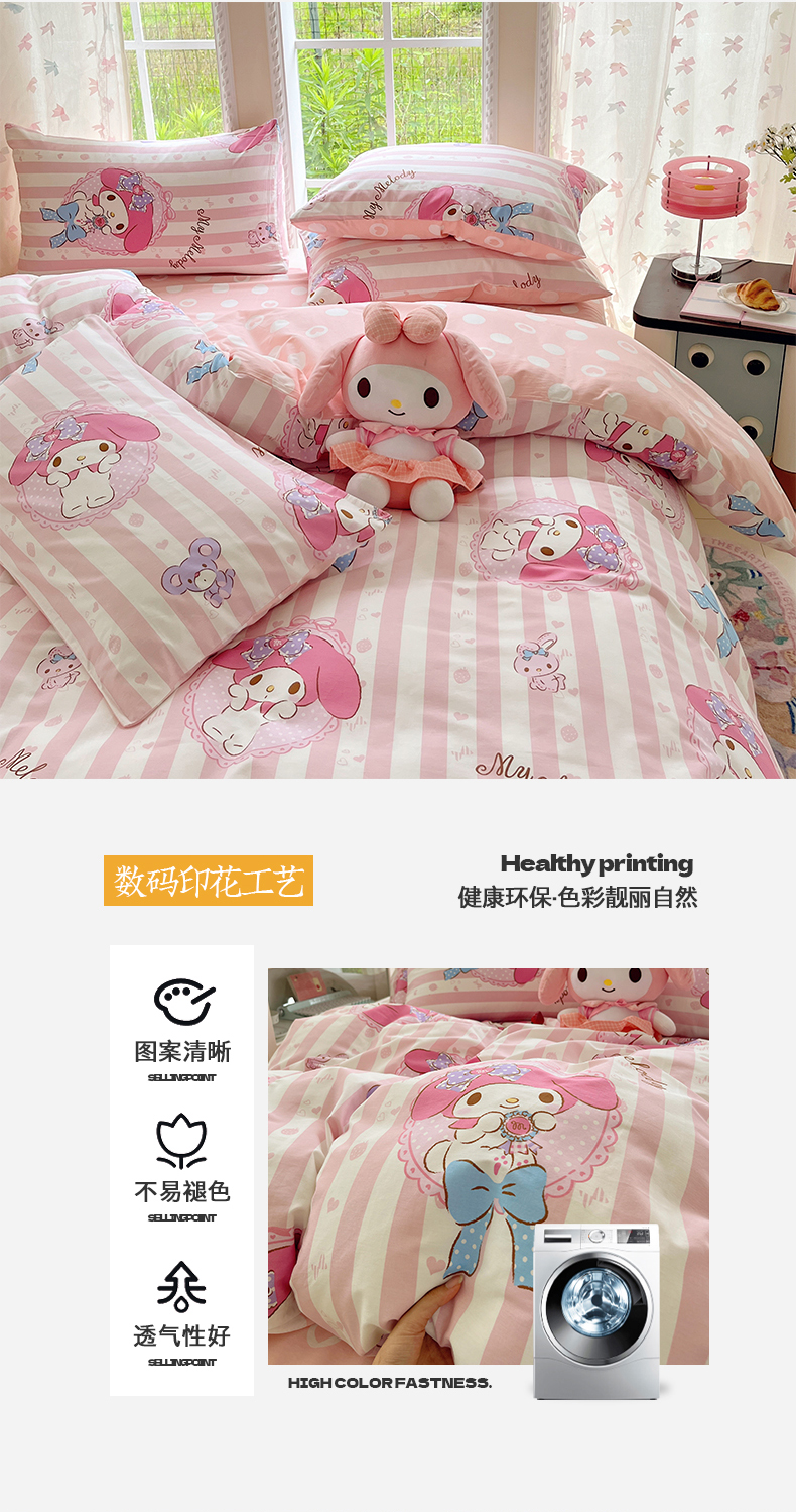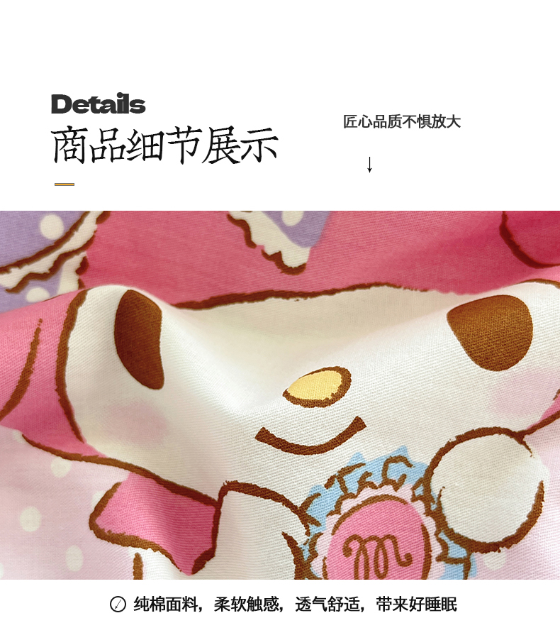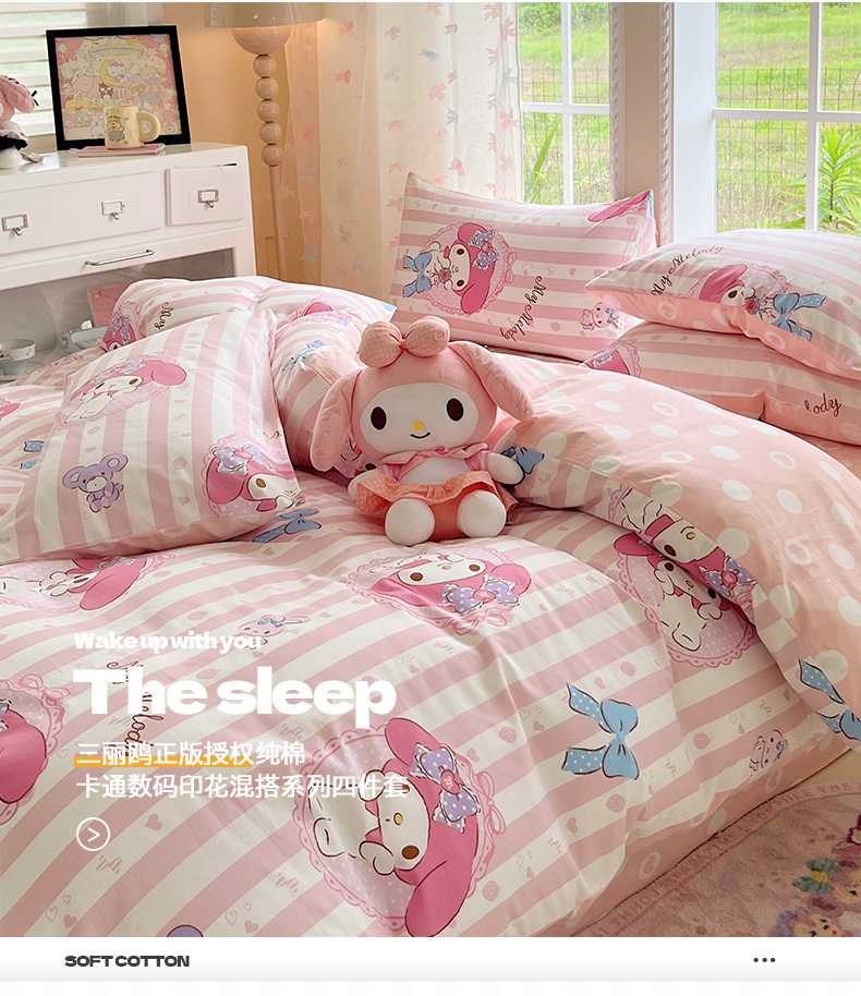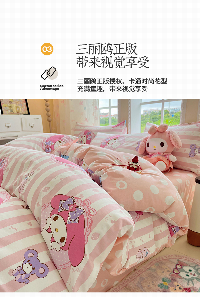 当前位置: 91家纺网 > 商品网购 > 床品套件 > 四件套 > 全棉普通四件套 > 金爱家2025新款三丽鸥正版授权卡通数码印花混搭纯棉印花系列四件套 棉三丽鸥-甜甜美乐蒂