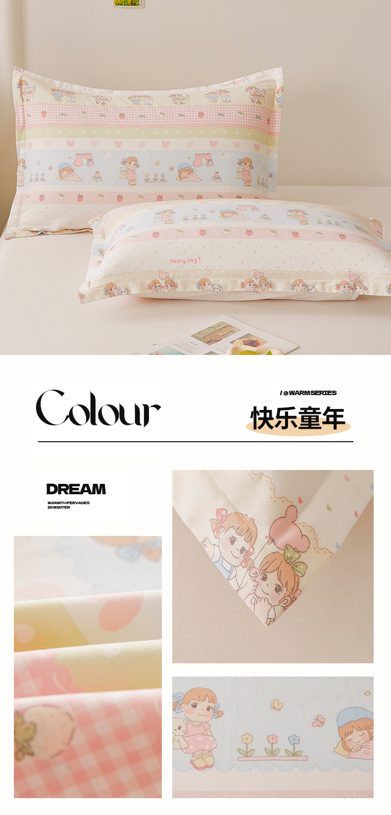 (总)翎盈家纺2025款ins风小清新卡通多规格全棉枕套纯棉枕头套