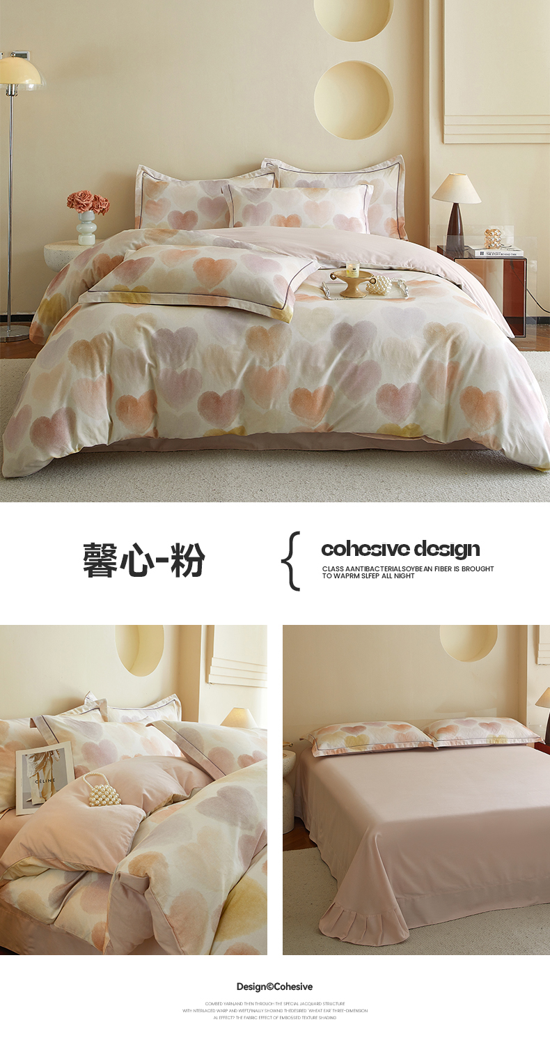 当前位置: 91家纺网 > 商品网购 > 床品套件 > 四件套 > 全棉普通四件套 > 沐白家居 2025新款全棉生态磨毛四件套馨心-粉