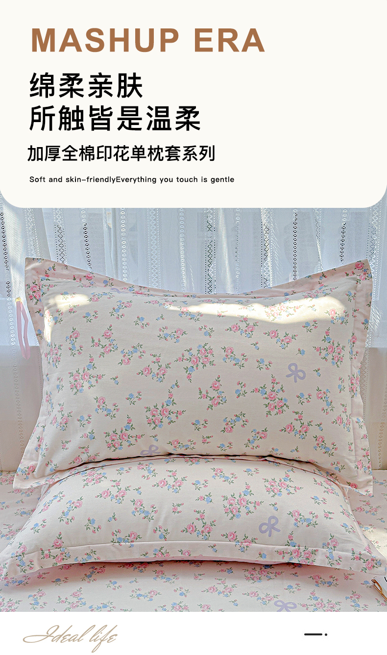 (总)恩泽家纺 2026新款13372ins全棉印花四件套单品系列-单枕套,爱的陪伴,百花缘,半夏,半月时光,贝拉花园,彼岸花开,晨曦海棠,翠影,淡香春意,繁花夕露,花开宿语,花影间,眷恋,空谷幽兰,酷仔熊,乐享生活,乐园,菱形世界,满香庭,沫恋,沐浴暖阳,若薇,叶玲珑,樱雪,优朵蔓,玉兰芬芳,早安,芷妍