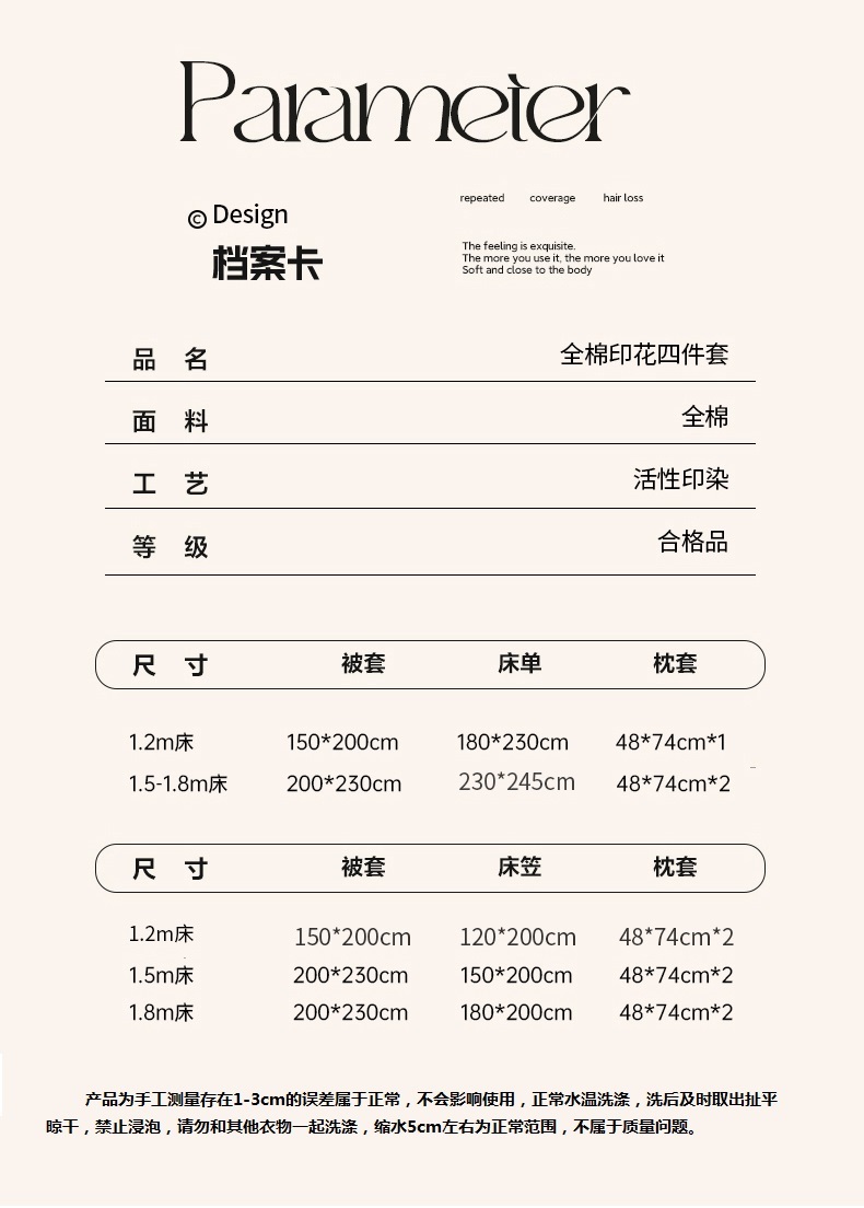 【床笠款】1.5四件套-被套200x230 | ¥120.00 |