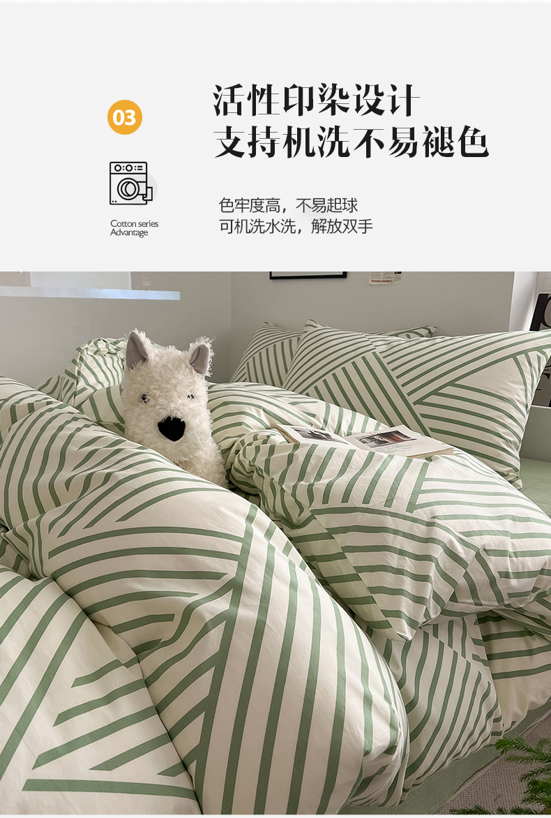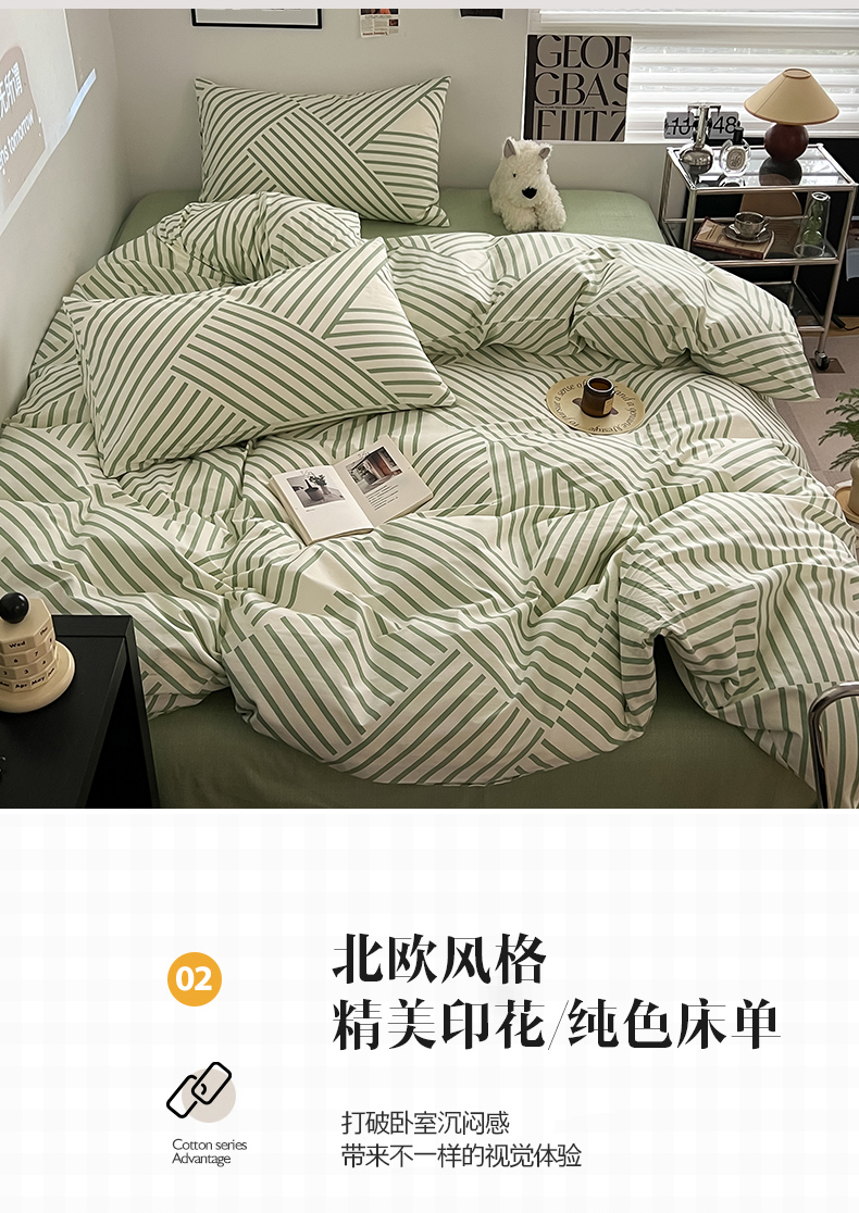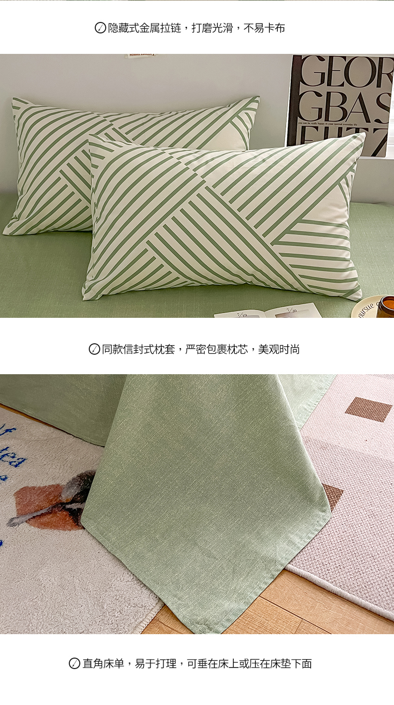 当前位置: 91家纺网 > 商品网购 > 床品套件 > 四件套 > 全棉普通四件套 > 吉象家纺 2025新款全棉纯棉印花北欧简约系列四件套 语初绿