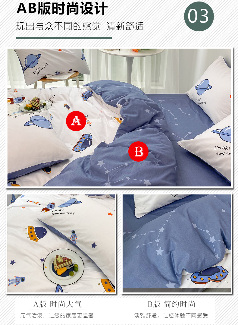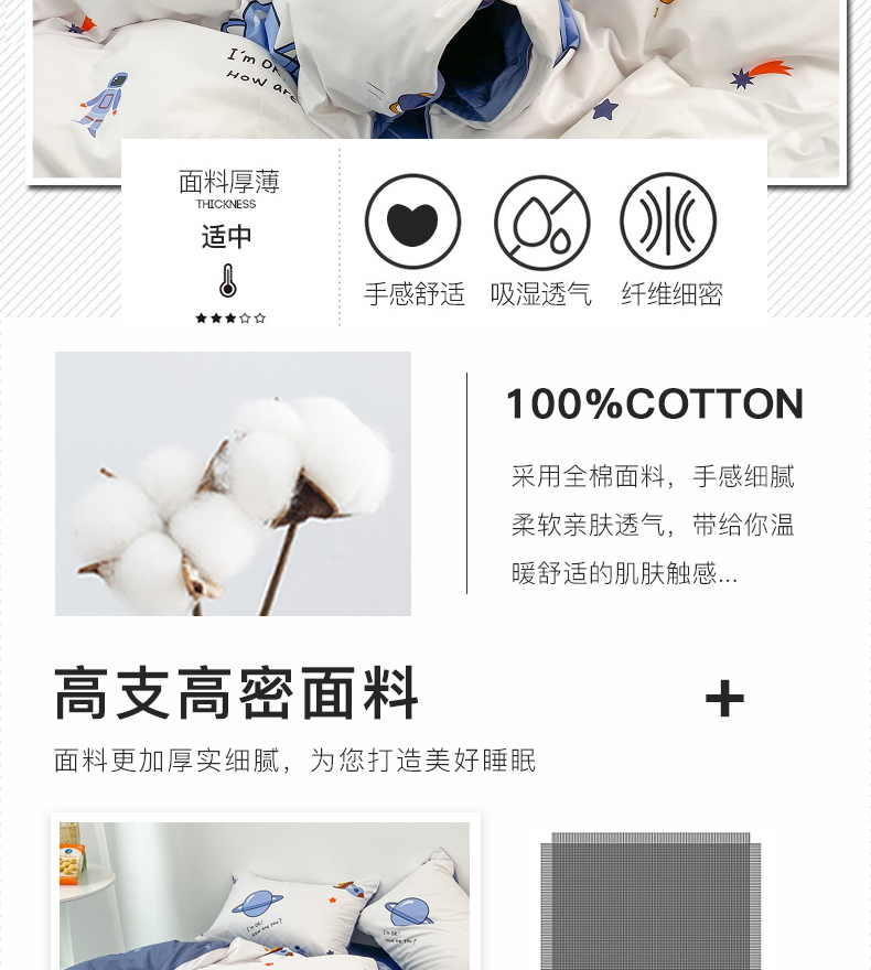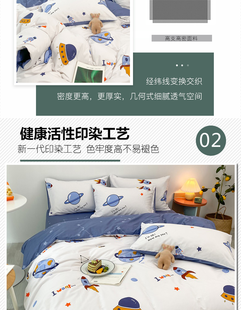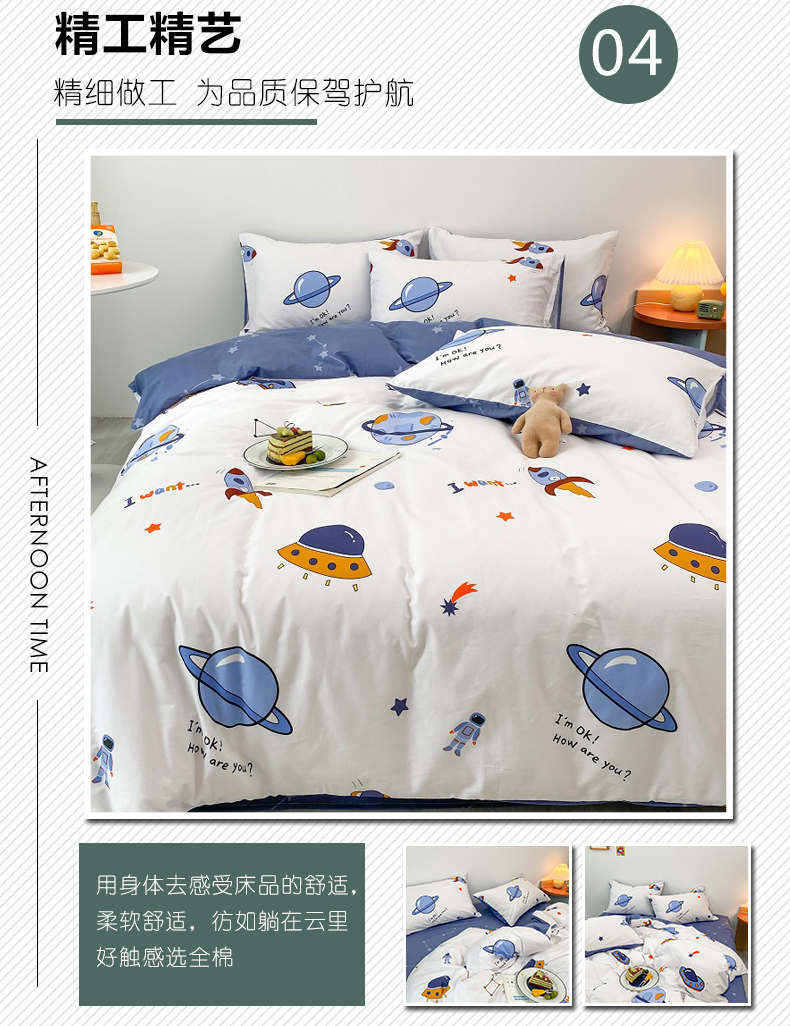 当前位置: 91家纺网 > 商品网购 > 床品套件 > 四件套 > 全棉普通四件套 > 吉象家纺 2025新款亲肤舒适全棉纯棉小清新卡通系列四件套 太空旅行
