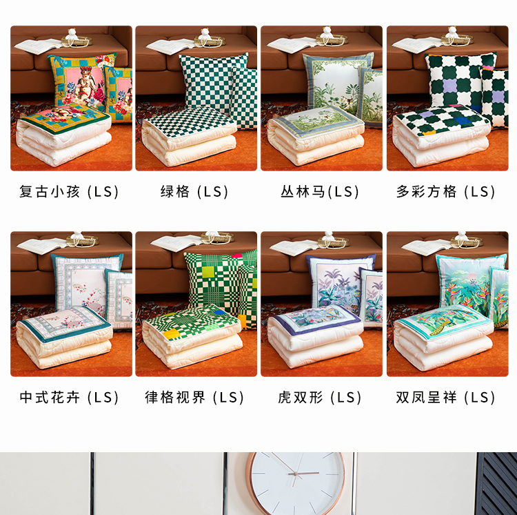 (总)新奇异 2025新款柿柿如意棉麻抱枕被,ZH,组合图仅供展示,成事,千鸟格,事事顺心,柿柿如意,心想事成