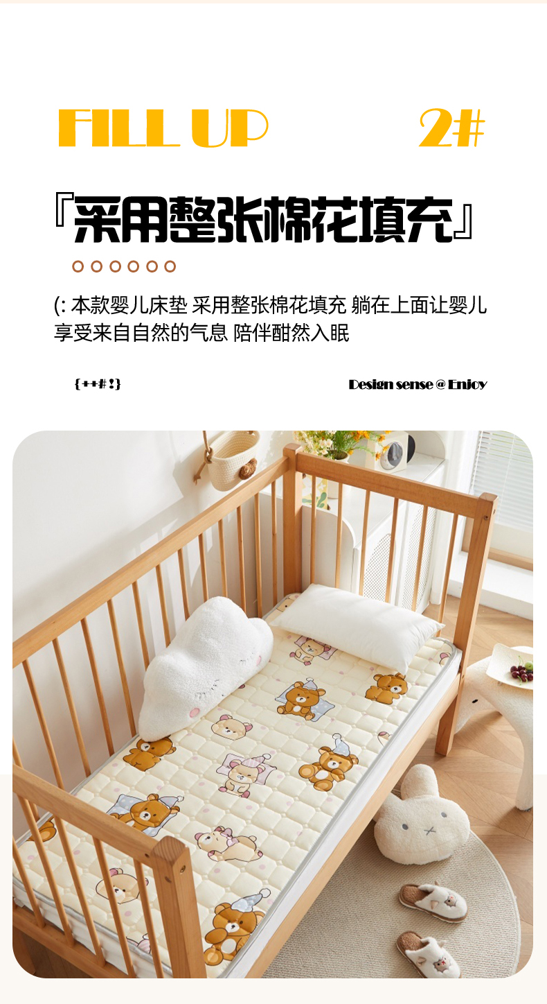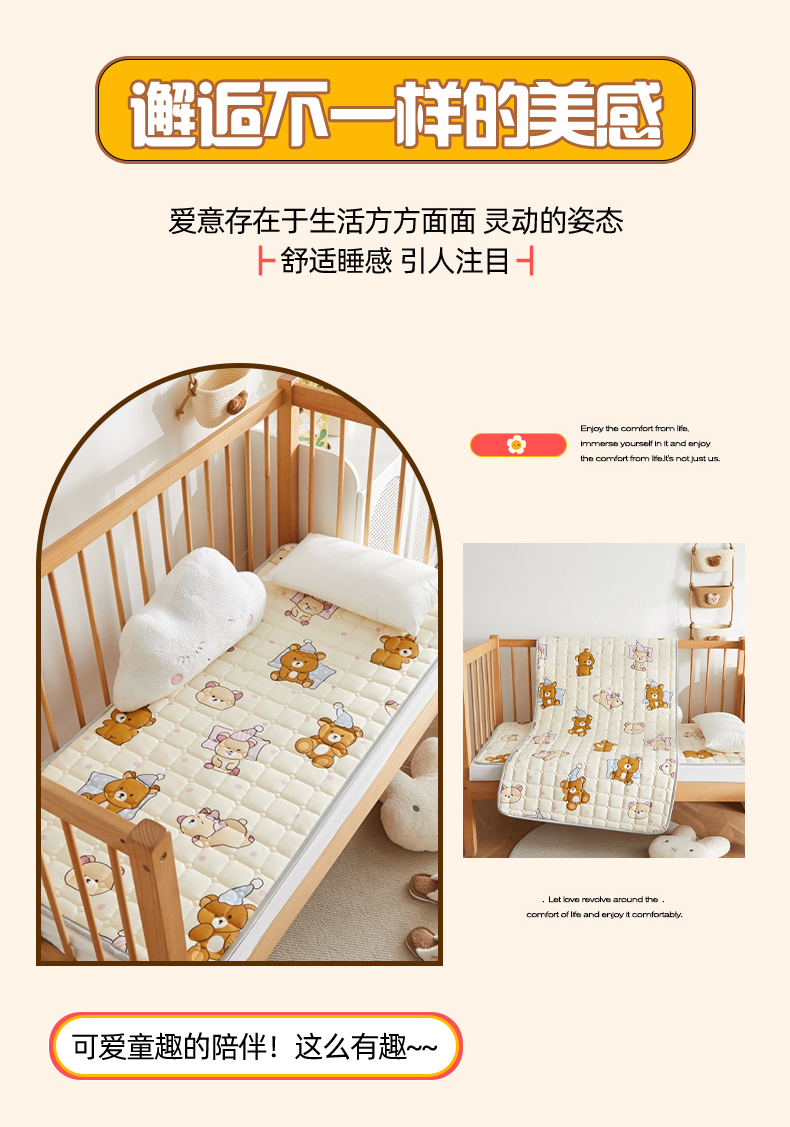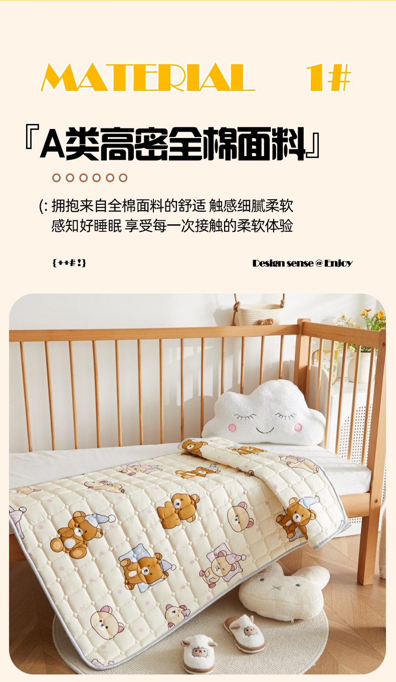 奇丝雅 2025新款A类全棉棉花婴儿薄床垫幼儿园床褥子儿童专用小宝宝拼接四季通用午睡垫被午托入学 棉花填充-熊熊枕边语-全棉款