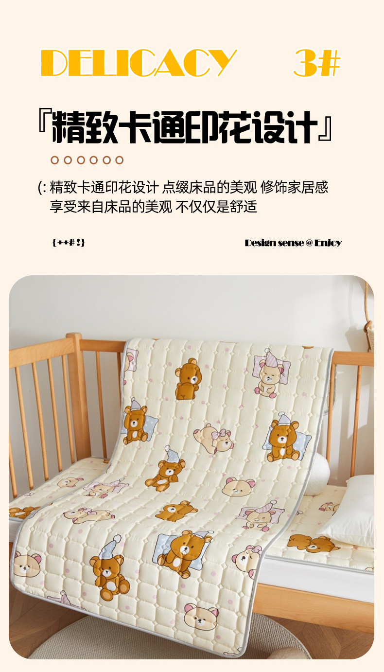 商品名称:奇丝雅 2025新款A类全棉棉花婴儿薄床垫幼儿园床褥子儿童专用小宝宝拼接四季通用午睡垫被午托入学 棉花填充-熊熊枕边语-全棉款